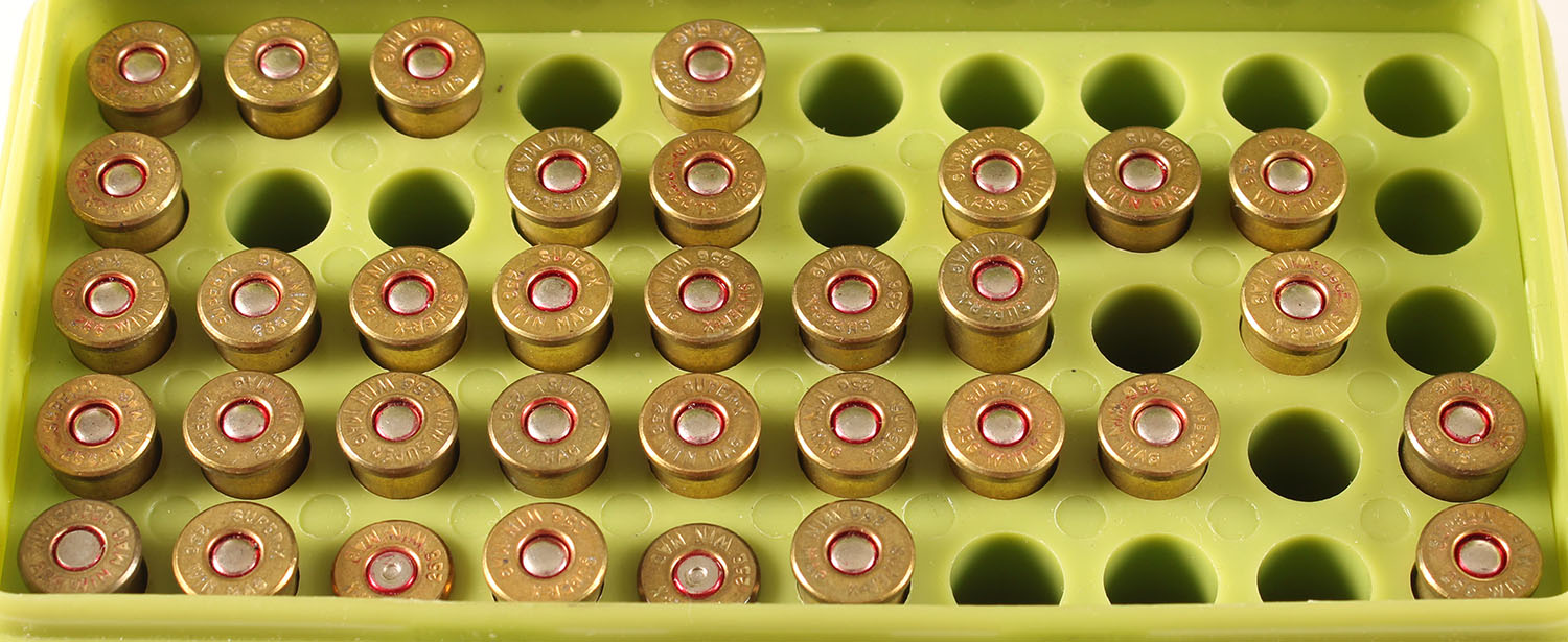 Winchester, Super X, .256 Winchester Magnum, 60 Grain HP, Partial 31rds, 1pc, Green plastic box, box is solid, ammo is very good. Grade: Very Good - Value: 40 to 60