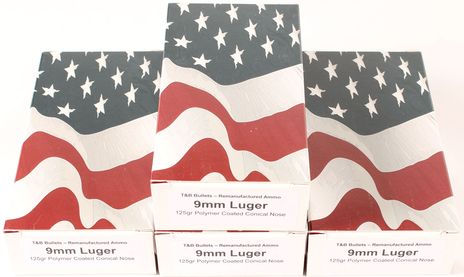 T&B Bullets, 9mm Luger, Remanufactured Ammo by a class type 7 Ammo MFG (this is the same class (high quality) as Winchester, Federal and or CCI), 125 Grain Polymer Coated Conical Nose bullet, loaded cartridges, Full, 1pc, Multi-colored boxes are very solid, ammo is minty. Grade: Excellent ++ - Value: 30 to 45