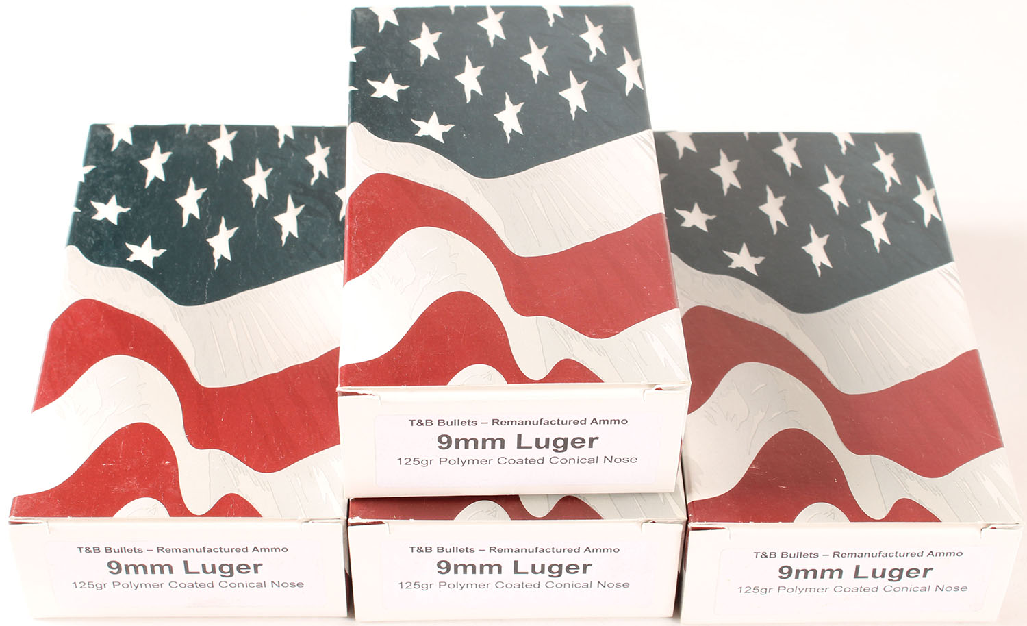 T&B Bullets, 9mm Luger, Remanufactured Ammo by a class type 7 Ammo MFG (this is the same class (high quality) as Winchester, Federal and or CCI), 125 Grain Polymer Coated Conical Nose bullet, loaded cartridges, Full, 1pc, Multi-colored boxes are very solid, ammo is minty. Grade: Excellent ++ - Value: 30 to 45