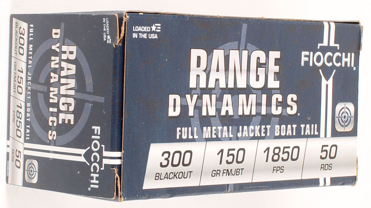 Fiocchi, Range Dynamics, 300 Blackout, 150 Grain FMJBT, Full, 1pc. Multi-colored box, box is very solid with excellent color, Ammo is minty. Grade: Excellent ++ - Value: 20 to 30