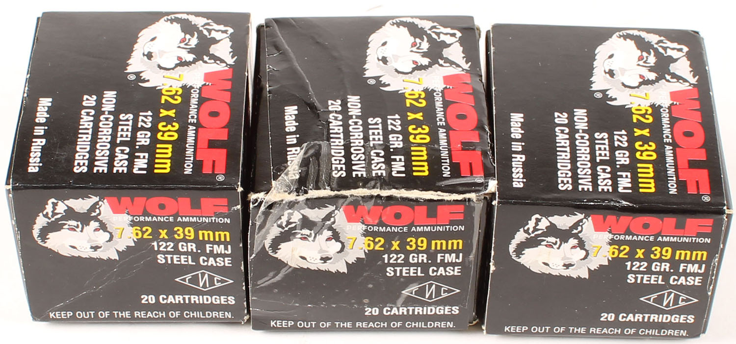 | Wolf, Lot of (3), 7.62x39mm, 122 Grain FMJ Steel Case, Full, 1pc...
