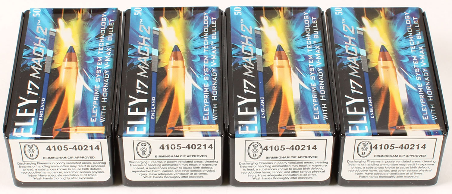 | Eley, Lot of (4), Eley 17 Mach 2, Hornady V-Max Bullet, FULL & ...