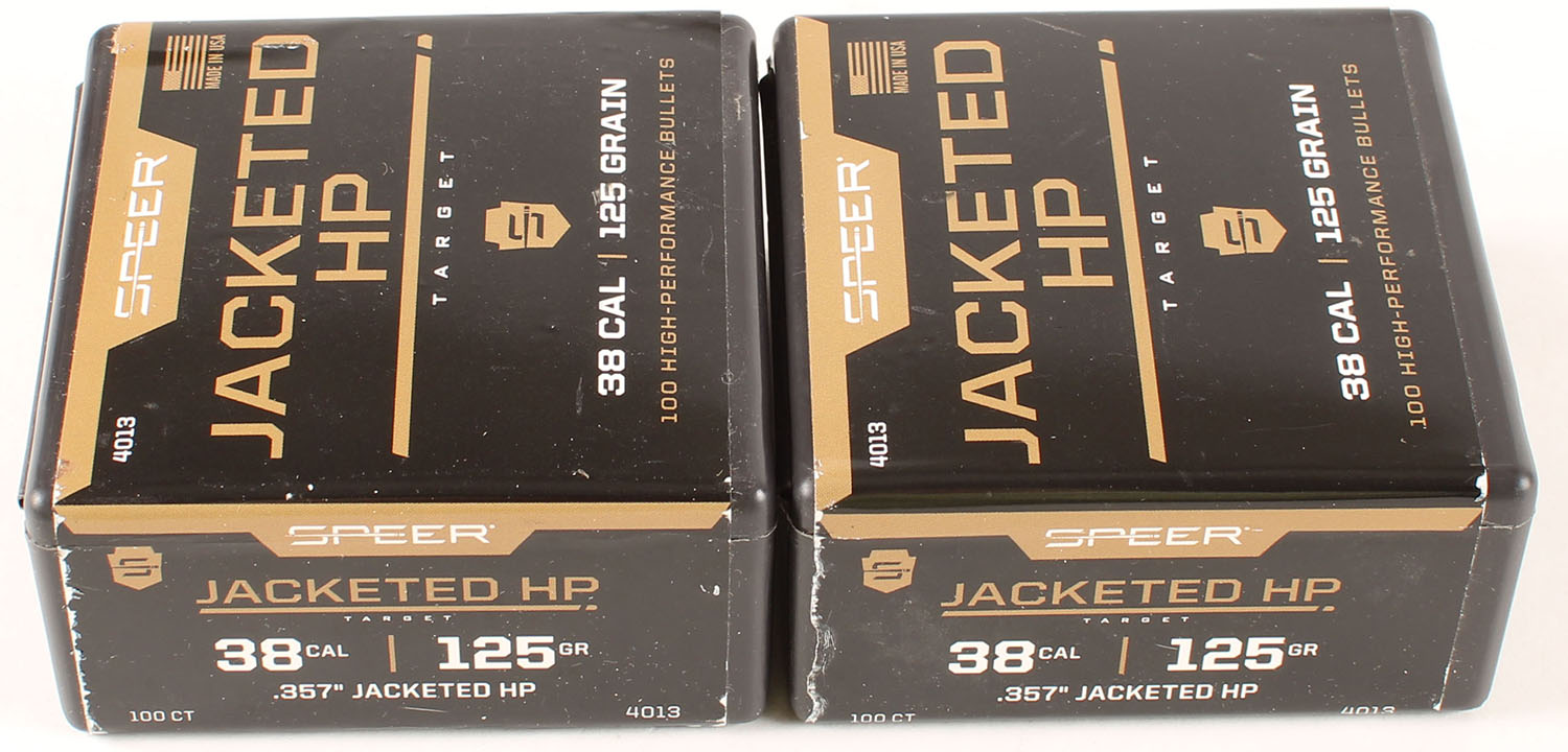 Speer, Lot of (2), Jacketed HP, .38 Cal., 125 Grain, .357'', FULL & SEALED, 1pc, Black plastic boxes are minty. Grade: Excellent ++ - Value: 20 to 30