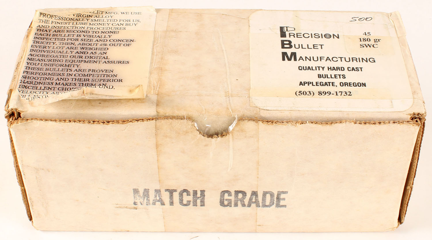 Large lot of Precision Bullet Manufacturing, Match Grade, .45 Cal., 180 Grain SWC, box appears Full. Grade: Very Good - Value: 20 to 40