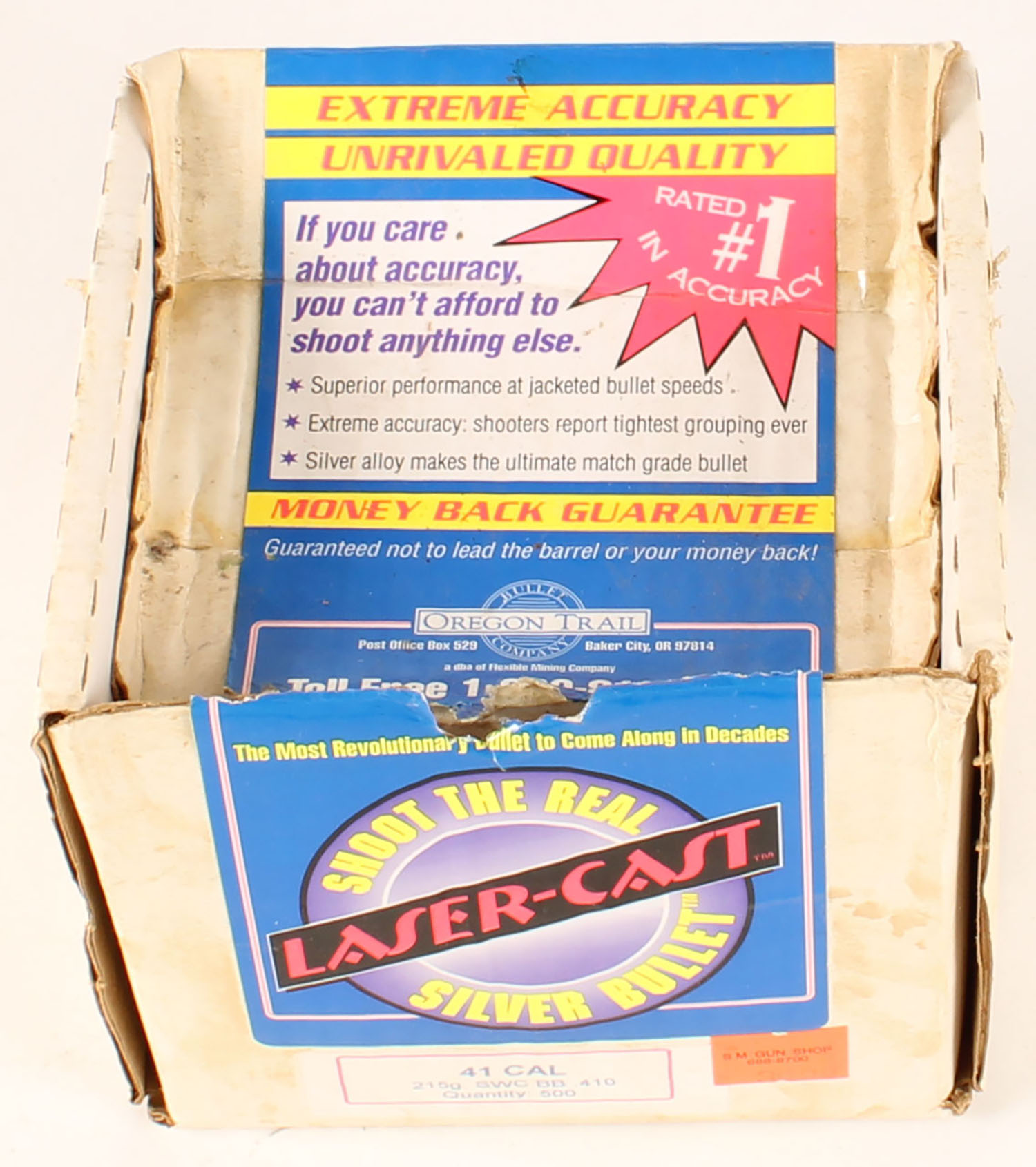 Large lot of Oregon Trail Co. Bullets, .41 Cal., .410'', 215 Grain SWC, box appears Partial (1/3 Full). Grade: Very Good - Value: 10 to 40