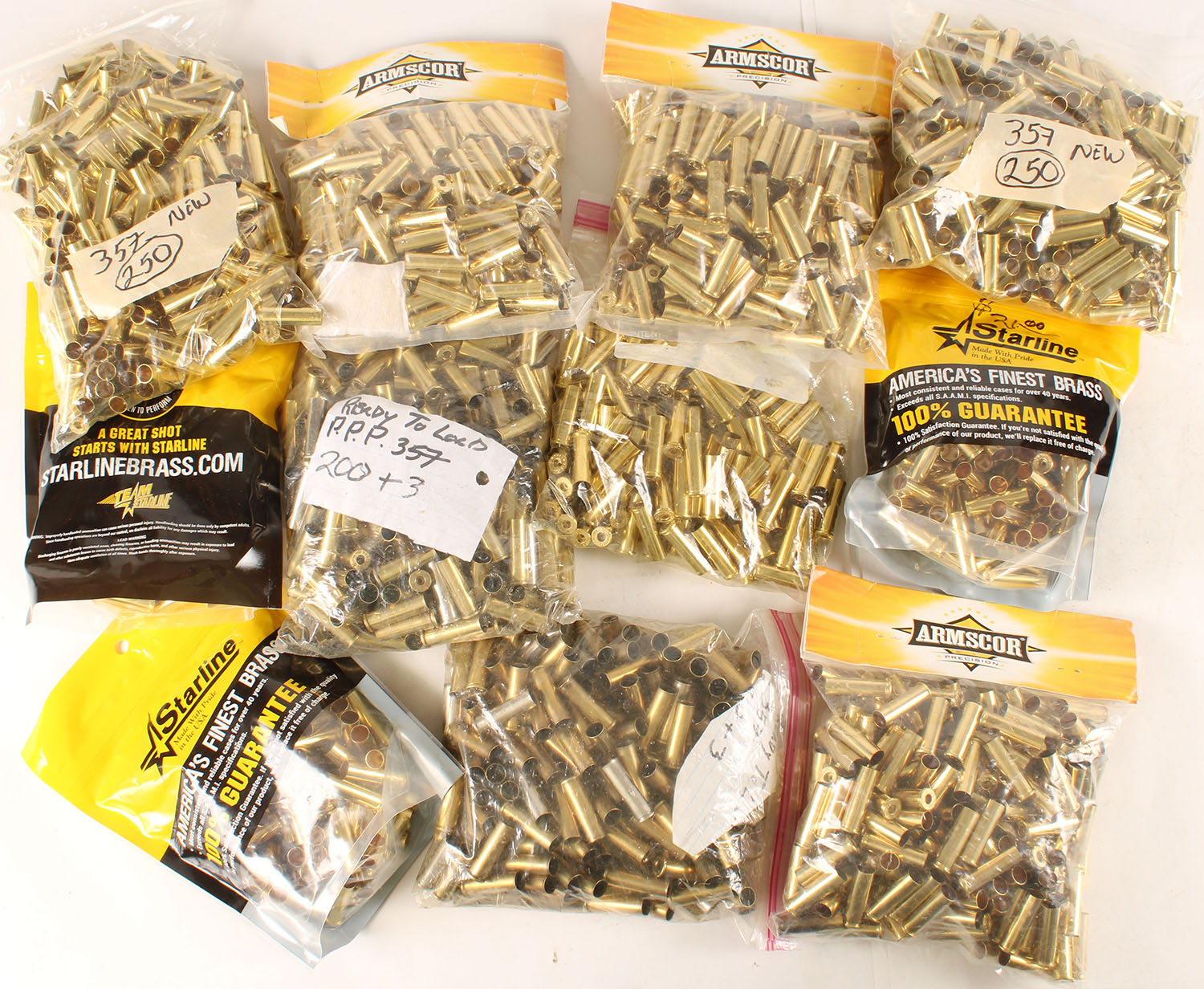 Mixed Mfg., Approx 21 lbs. of .357 Magnum, unprimed brass, mixed H/S, brass is excellent. Grade: Excellent ++ - Value: 30 to 90