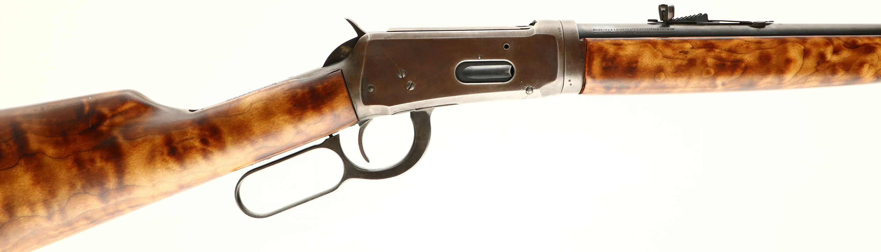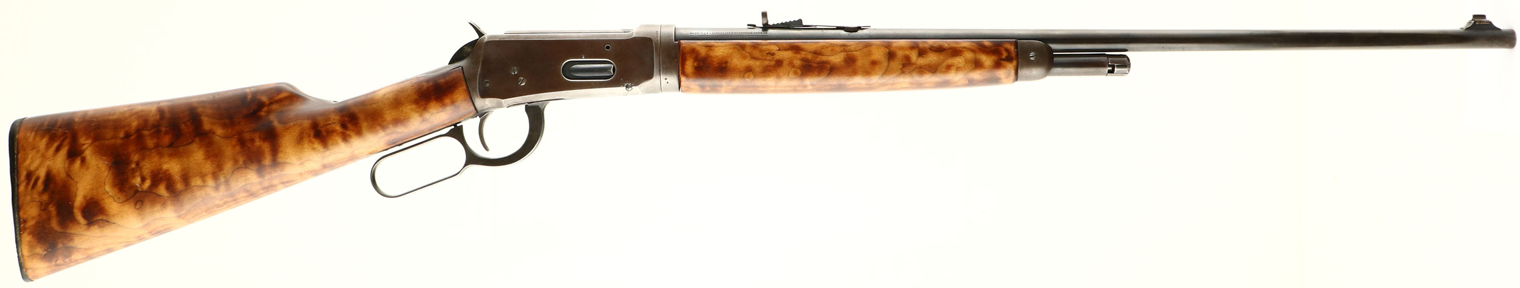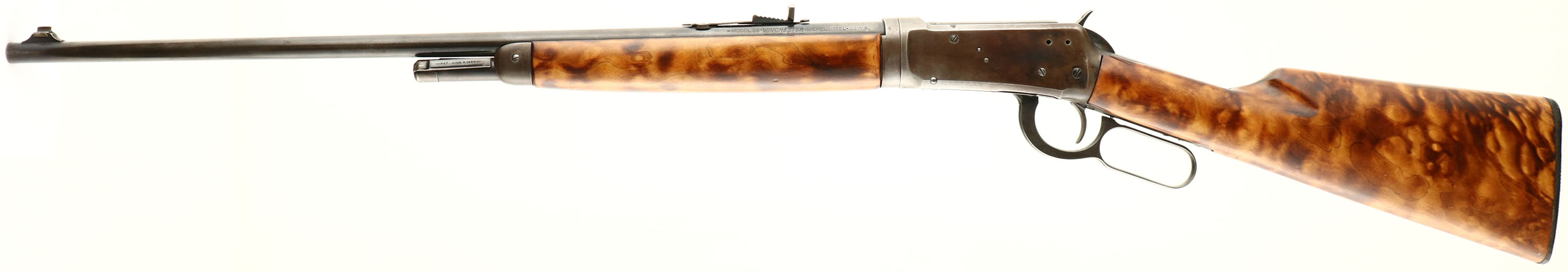 Winchester, Model 55 TAKE-DOWN, marked 32 WS, MFG: 1927, SN: 6974, Lever Action Rifle, 24'' Lightweight fast tapered round barrel, 3 round mag, Take-down rifle. The replaced straight grip wood stocks are very good, but are not a factory fit & stand proud to the metal. The finish on both are excellent, with a few minor scuffs or contusions. The original metal blue finish on the barrel & mag rates 30%, while the receiver has worn to a gun metal gray, with a thin brown patina. The barrel carries a King adjustable rear & Lyman blade front sights. Bore is very good, Stock fitted a Winchester marked plastic replacement. Smooth tight action. Overall nice & unique appearance. This is one of the rarer Winchester models with only 20,580 model 55 rifles manufactured. FFL or C&R Req. - Value: 500 to 1000