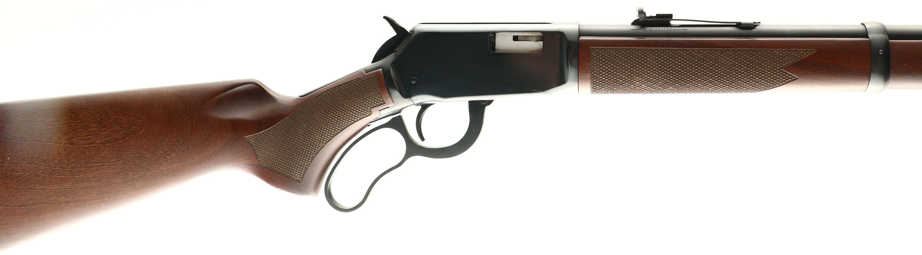 Winchester Model 9417, CAL: 17 HMR, MFG: Modern, SN: F767991, Lever Action Rifle, 22 1/4'' barrel. Grooved receiver. The original checkered, straight grip wood stocks are excellent, displaying factory finish & very few minor handling marks. The original metal blue finish rates 95% overall. Barrel holds an adjustable rear elevator sight & a ramped front sight. Bore is excellent. Buttstock carries a factory Winchester rubber buttplate. An overall excellent rifle. FFL Req. - Value: 600 to 1200