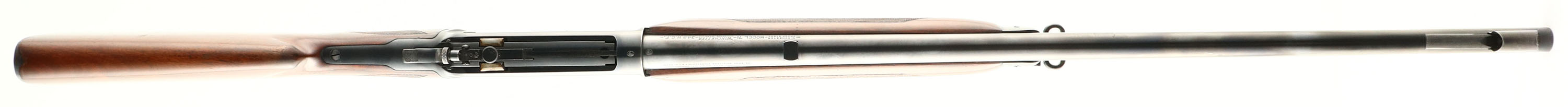 Winchester, Model 71 Deluxe Long Tang, marked 348 W.C.F., MFG. 1936, SN: 9198 (2nd Year Production), Lever Action Rifle, 24'' Round barrel, 2/3 tube mag holds 4 cartridges. An improved model 1886, with just 47,254 made & only 16,900 as Long tangs, & fewer deluxe models, which are in high demand amongst collectors & command premium values. The checkered & capped pistol grip wood stocks are excellent, solid & original. The stocks carry the original finish. There is a small glue repaired corner chip at the upper left shoulder of the wrist & very few other minor scuffs or contusions. The original metal blue finish is 95% on barrel & mag., 90% on receiver, with loss due to carry wear on the belly. Factory upgraded with the rare 100 & 200 yard adjustable breech bolt peep sight, blank filled rear dovetail & front ramp hooded sight. Factory checkered metal buttplate. Excellent bore. Factory sling mounts, with swivels. A rare Winchester in the most collectible caliber & with the desirable long tang, breech peep & deluxe checkered wood. Excellent collectible. FFL or C&R Req. - Value: 3000 to 5000