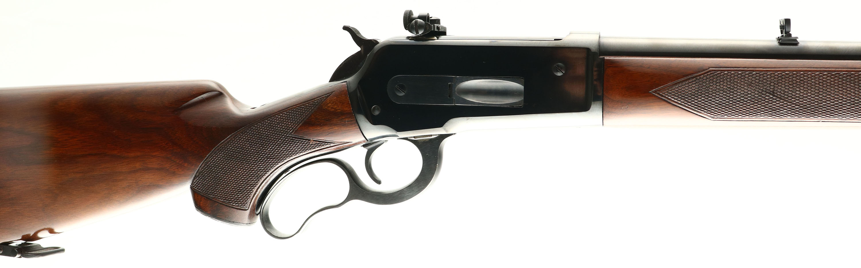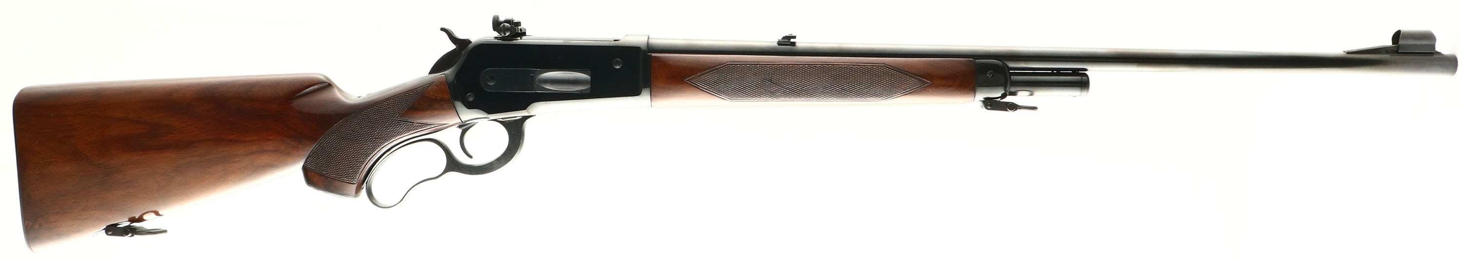 Winchester, Model 71 Deluxe Short Tang, marked 348 W.C.F., MFG: 1957 (Last year of production), SN: 46391, Lever Action Rifle, 24'' Round barrel, 2/3 tube mag holds 4 cartridges. Improved model 1886, with just 47,254 made. The checkered & capped pistol grip wood stocks are excellent, solid & original. The stocks show minor finish level scratches & tiny contusions to the excellent original finish. The original metal blue finish is 98% overall. Upgraded with a Lyman adjustable receiver sight. Barrel carries a folding leaf rear sight & hooded ramp front sight. Factory checkered metal widow's peak buttplate, with the majority of the original blued finish. Bore is excellent & bright. The factory sling mounts carry the correct sling swivels. An excellent & rare Winchester rifle, with deluxe checkered wood. FFL or C&R Req. - Value: 3000 to 5000