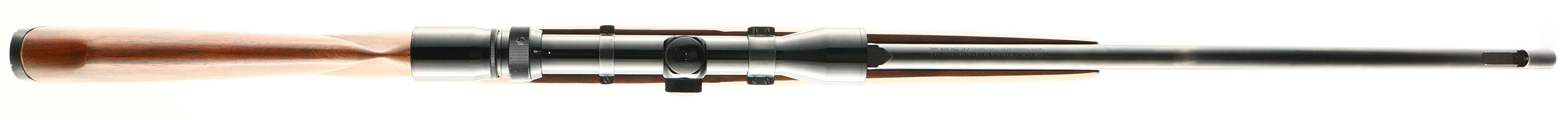 Marlin, Model 62 Levermatic Carbine, CAL: 256 WIN MAG, CAL: 1963-69, SN: 6707, Lever Action Rifle, 24'' Round barrel. The capped, flat pistol grip Monte Carlo style wood stock is excellent. It displays very few light surface scratches or handling marks to its excellent original finish. The metal blue finish rates 95% overall. The Micro Grooved bore is excellent. The rifle comes fitted with a Banner by Bushnell 3x-8x scope, while the barrel has a Marbles folding leaf rear & a ramp hooded blade front sight. Buttstock carries the original Marlin marked checkered black plastic buttplate. Sling swivels. Missing the Marlin trademark bullseye from the belly of the stock. Original detachable mag. An original & excellent overall example. FFL or C&R Req. - Value: 600 to 1200