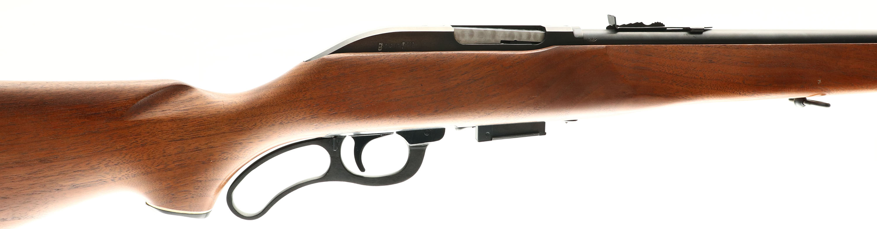 Marlin, Model 62 Levermatic Carbine, CAL: marked 30 U.S Carbine, CAL: 1968, SN: 68 49038, Lever Action Rifle, 20'' barrel. The original capped pistol grip, Monte Carlo style wood stock is excellent. It displays very few tiny handling marks to its excellent original finish. The metal blue finish rate 97% overall. Bore is excellent & bright. The barrel holds an adjustable rear sight & ramp/blade front sight. Buttstock carries the original Marlin checkered black plastic buttplate. Sling swivels. Marlin trademark bullseye in the belly of the stock. Original detachable mag. A previous owner electric pencil marked both sides of the receiver & next to the lever with a seven digit DL #. A very nice example of an original carbine. FFL or C&R Req. - Value: 500 to 1000