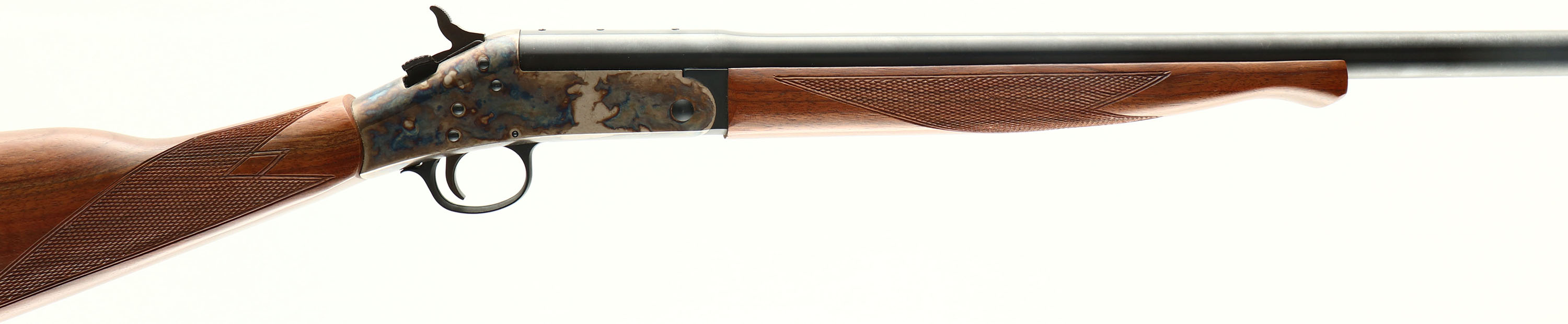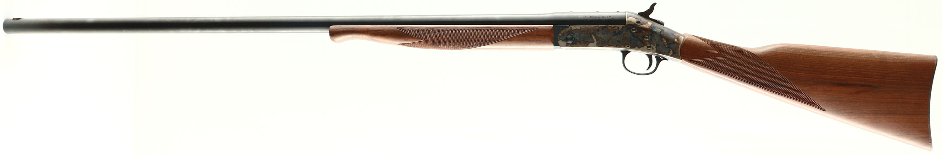 Wesson & Harrington, Model 1871, CAL: 45-70, MFG: Modern, SN: WH710146, Break Action Single Shot Rifle, 32'' round barrel. The original checkered straight grip wood stocks are excellent, displaying virtually no handling marks to the excellent original finish. The metal blue finish rates 99% overall, with the receiver displaying fantastic case-colors. Bore is excellent. The rifle carries 3 factory screw filled holes on the top of the barrel for future scope mounting & a blank filled dovetail at the muzzle end. The buttstock carries a smooth metal buttplate. Like new overall condition. FFL Req. - Value: 350 to 700