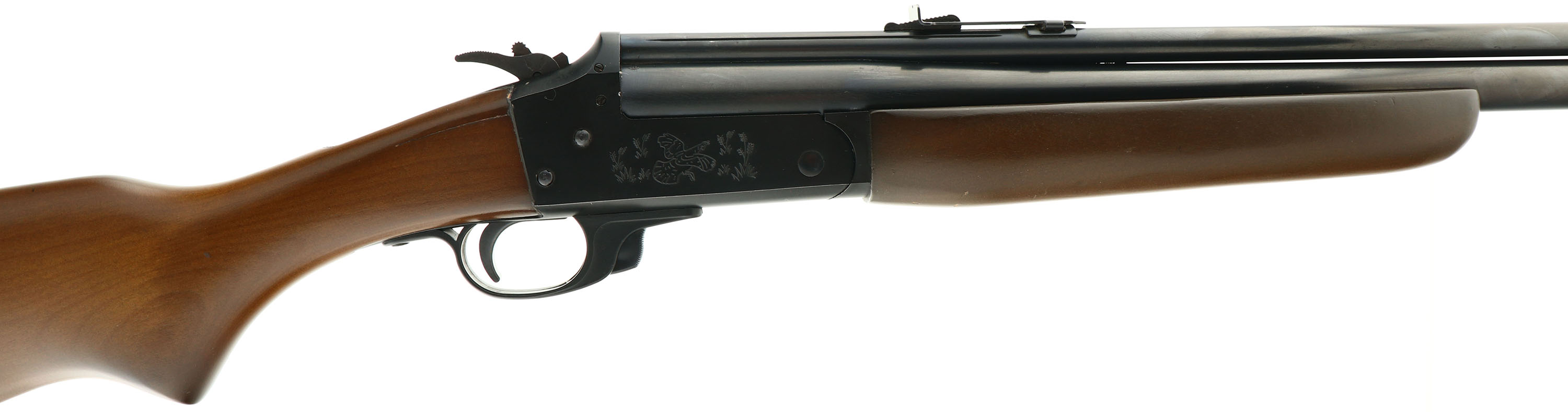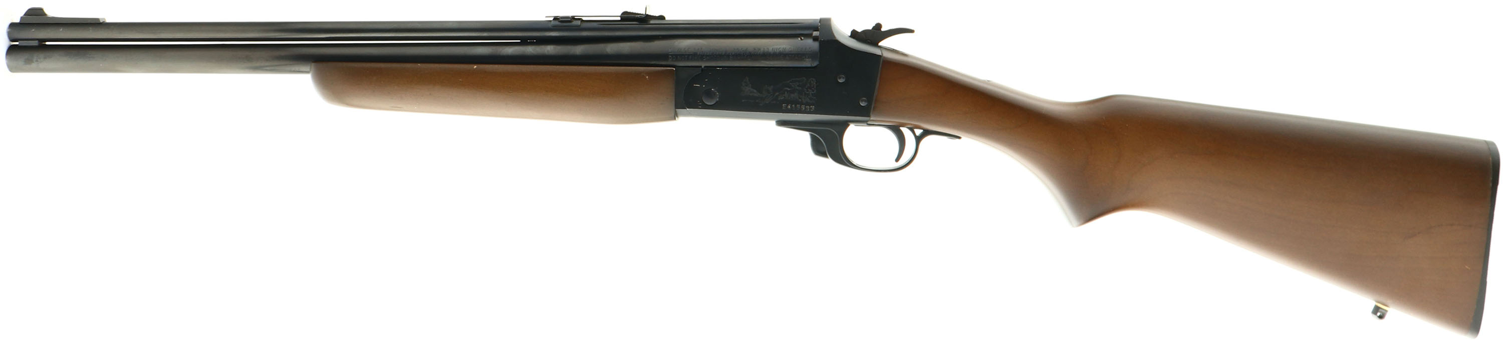 Savage Arms, Model 24C Series S, CAL: .22 LR/20ga, MFG: 1950-2010, SN: E415533, Break Action O/U Rifle Shotgun Combination, 20'' round barrels. The original flat pistol grip wood stocks are excellent, displaying very few light handling marks to the excellent original finish. There is a 2'' hairline crack on the left side of wrist eminating from the receiver. The metal blue finish rates 90% overall. Bores are excellent. The rifle carries an adjustable rear & ramped blade front sights. The buttstock carries a serrated plastic buttplate. Sling stud. Excellent overall condition. FFL Req. - Value: 250 to 500
