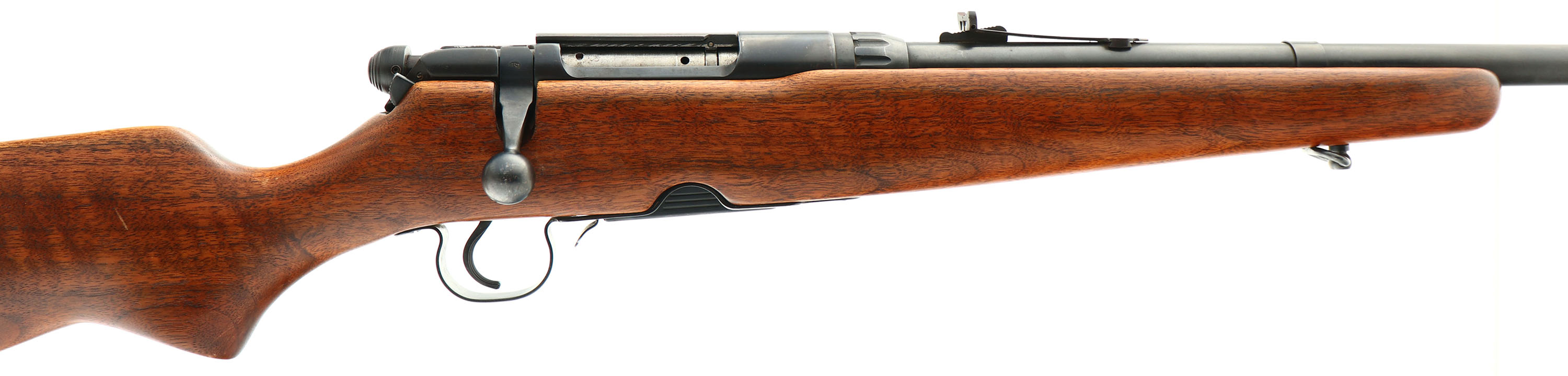 Savage, Model 340 C Series, CAL: 30-30, MFG: 1960's, SN: None, Bolt Action Rifle, 22'' Round barrel. The original flat pistol grip wood stock is excellent. It appears to carry the original factory finish, with a possible thin layer of added finish. There are a few minor dings or scrapes to the excellent finish. The original metal blue finish rates 90% overall. Bore is excellent & bright. The barrel carries an adjustable rear & ramped blade front sights, The left side of thte receiver has four open holes where a scope mount previously resided. Buttstock carries the original serrated plastic buttplate. Original detachable mag. Sling loops. FFL or C&R Req. - Value: 250 to 500
