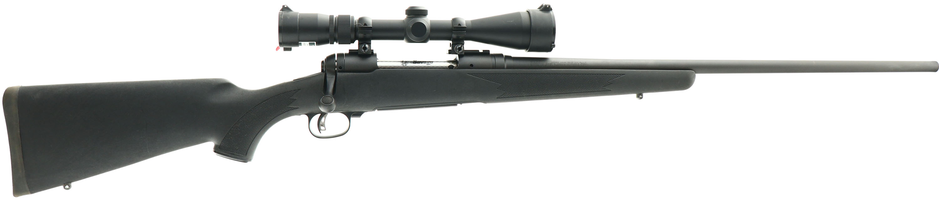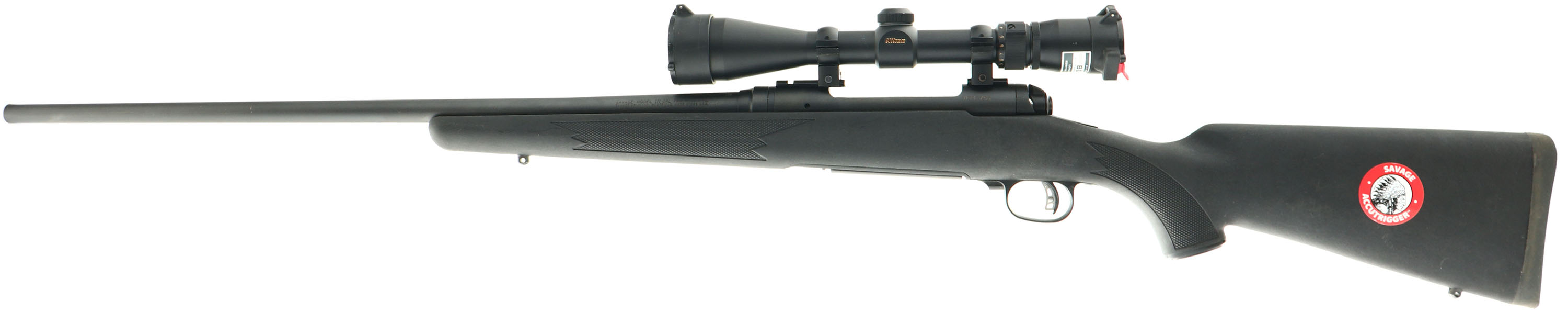 Savage, Model 111, CAL: 7mm REM MAG, MFG: Modern, SN: H635786, Bolt Action Rifle, 24 1/4'' Tapered round barrel. The original checkered & capped pistol grip synthetic stock is excellent, with minor rubs & use marks. The original metal finish 99% overall. Bore is excellent. The receiver is fitted with a Nikon 3-9x40 Scope with flip-up caps, while the barrel has no open sight provisions. Stock carries a solid recoil pad. Sling studs. Two factory detachable mags. FFL Req. - Value: 300 to 600