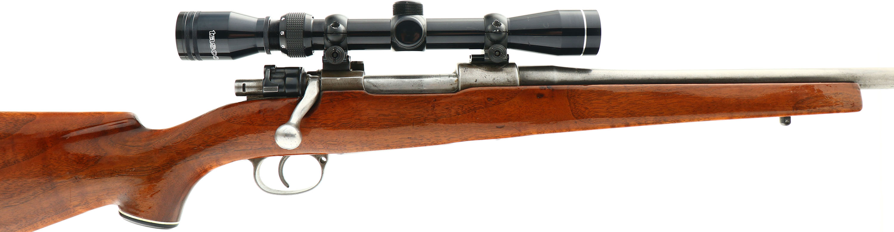 CUSTOM Waffen Fabrik Mauser Oberndorf A/N, Model M1909 Peruvian Mauser, CAL: 7X57mm, MFG: 1910-14, SN: 9566, Bolt Action Rifle, 22'' custom barrel. Barrel stamped ''7MM'', which in this case is 7X57mm, a current production & affordable hunting round similar to a 270 Winchester / 270 Rem round in ballistic performance. The custom cheeked & capped pistol grip Monte Carlo wood stock is excellent. The wood shows several minor to small scrapes, scratches & contusions to the thick high gloss finish. The metal finishes are almost fully worn away to a gun metal gray. Barrel channel bedded to barrel. Bore is excellent. & bright. The receiver holds a Tasco 3-9x32 scope, while the barrel has no provisions for open sights. Buttstock carries a serrated plastic buttplate. Sling studs. FFL or C&R Req. - Value: 250 to 500