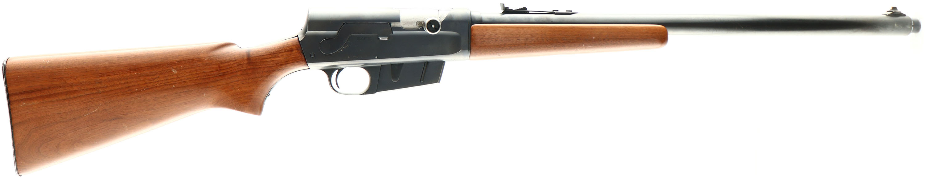 Remington, Model 81, 300 SAV. CAL, MFG. 1950, SN: 53794, Semi-Auto Rifle, 22'' barrel. The original flat pistol grip wood stocks are very good, having been sanded & nicely refinished. The metal is proud to the wood at the tangs, receiver & buttplate. There remains minor scuffs, scratches & contusions, along with a tight 1'' stress crack at the piont of the comb. The original metal blue finish rates 85% overall, with most of the loss due to egde wear, scratches & minor abrasions. The barrel carries standard rear & front sights. Bore is excellent. Stock carries the Remington checkered metal buttplate. 4 rd fixed magazine. Overall s sharp looking standard 81 rifle. FFL or C&R Req, - Value: 500 to 800