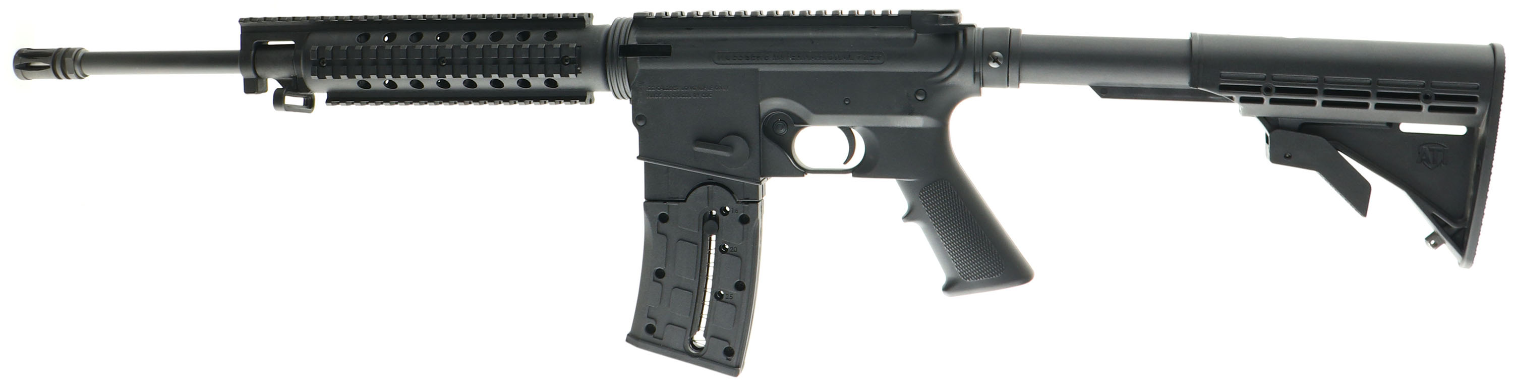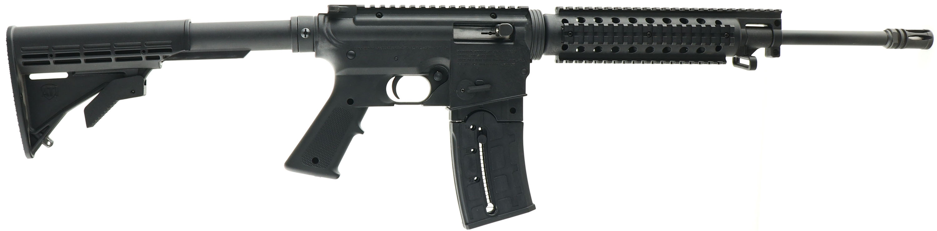 Mossberg International, Model 751T, CAL: 22 LR. MFG: Modern, SN: EMF3804982, Semi Auto, 16.25'' barrel, with a 1:16 twist, 17.25'' with flash hinder. Stocked with an ATI telescoping 11''-14.25'' LOP stock, access. Checkered plastic pistol grip & 8'' vented quad-rail handguard. All furniture is excellent, with very minor use rubs. The original metal finish rate excellent. The receiver carries a 7'' picatinny rail on the top. No current optics. Excellent bore. Sling stud & loop. 25 round mag. Overall excellent. FFL Req. - Value: 250 to 350