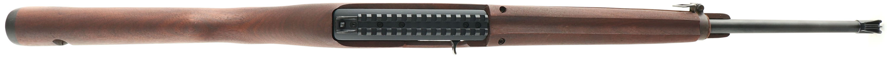 Ruger, Model 10/22 M1 Carbine Tribute, CAL: 22 LR, MFG: Modern, SN: 0020-22549, Semi Auto Rifle, 18 1/2'' barrel. Among the most useful, reliable, and practically accurate .22 caliber rifles made is the Ruger 10/22. Introduced in 1964, the Ruger 10/22 has become the most popular .22 rimfire rifle in America. The M1 .30 Carbine was used in World II, Korea, & Vietnam & is a highly collectible firearm. Light, handy, & firing a mid range cartridge, the M1 carbine was the first low-maintenance military rifle & the first issued with non-corrosive ammunition. Ruger has introduced a version of the rifle that is similar in appearance to the M1 Carbine. The Ruger 10/22 M1 version isnt a reproduction as it is chambered in .22 Long Rifle, but it is fittingly called a tribute to the M1. The flat pistol grip M1 style wood stocks are excellent, with virtually no handling marks to the excellent original flat oil finish. The stock includs a slot in the rear of the stock that allows the use of a sling in the original M1 carbine manner, along with the sling loop on the forearm barrel band. The metal blue finish rates 100%. Bore is excellent & bright. The receiver carries a M1 style aperture type rear sight & a picatinney rail, while the barrel holds a the M1 blade sight with protective flared wings. Buttstock carries a smooth plastic buttplate. Comes in Ruger's replica U.S. marked tan canvas carry bag & ammo pouch. Excellent overall condition. FFL Req. - Value: 400 to 600