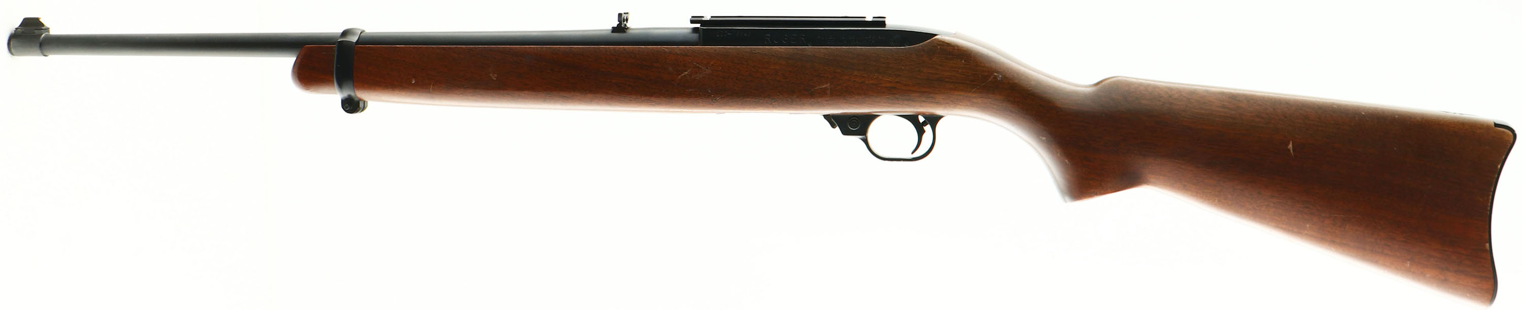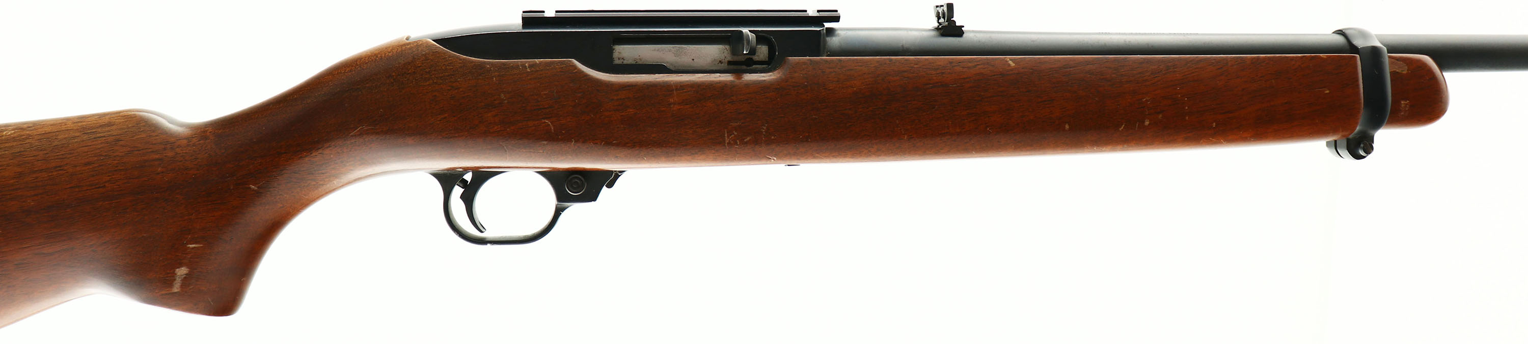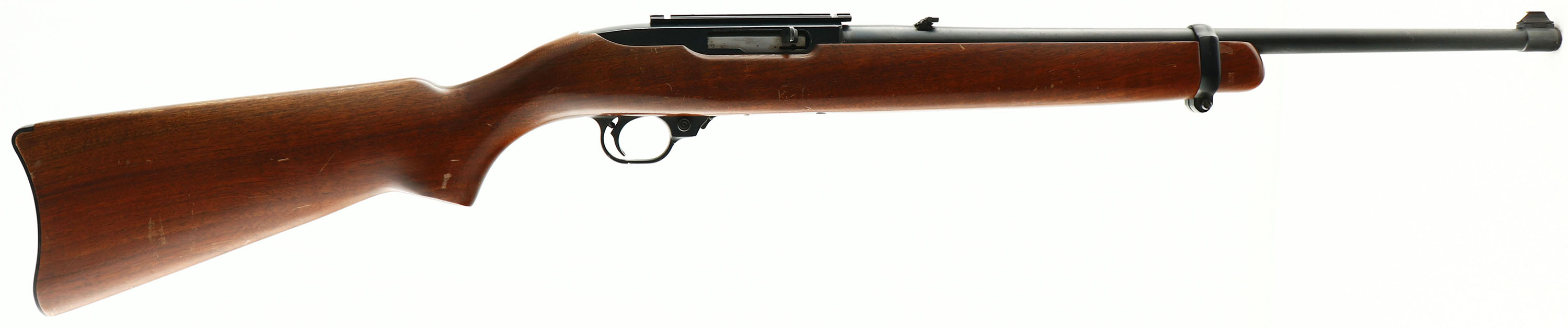 Ruger, Model 10/22 Carbine, CAL: 22 LR, MFG: 1971, SN: 110-79848, Semi Auto Rifle, 18 1/2'' barrel. The flat pistol grip wood stock is excellent , but with a number of small scrapes, scratches & contusions to the original finish. The metal blue finish rates 90%. Bore is excellent. The barrel holds a standard folding leaf rear sight & blade front sight. Top of the receiver caries a scope mounting bar for future scope mounting. Buttstock carries a smooth metal buttplate. FFL & C&R Req. - Value: 200 to 400