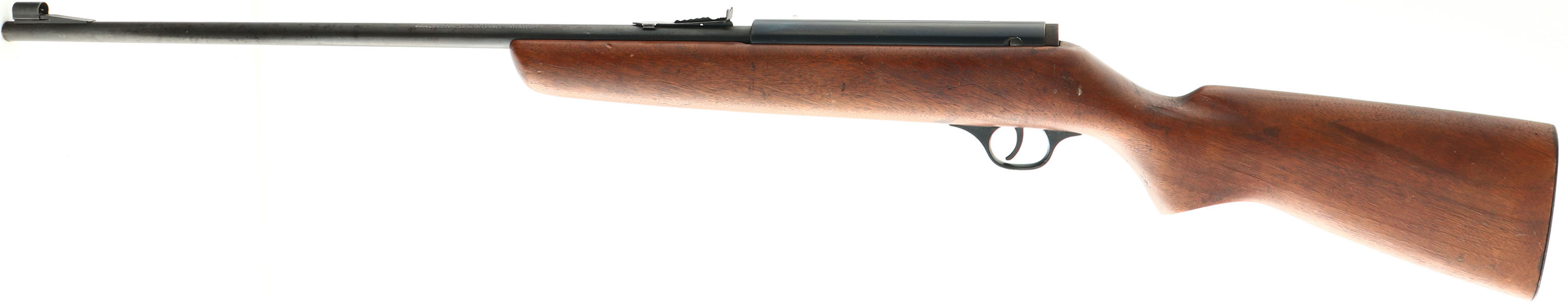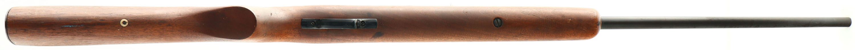 Marlin, Model 88, CAL: 22 LR. Only, MFG: early 1950's, SN: NONE, Semi Auto Rifle, 24'' barrel. The original flat pistol grip wood stock is very good, with several minor scrapes, scratches & contusions to the original stain & oil finish. The metal blue finishes rate 85% overall, with some staining & speckling on the barrel. Bore is excellent. The barrel carries an adjustable rear & hooded blade front sights. The stock carries a metal buttplate, with the tubular mag fed in the stock. Trademark bullseye in the stock. FFL or C&R Req. - Value: 100 to 200