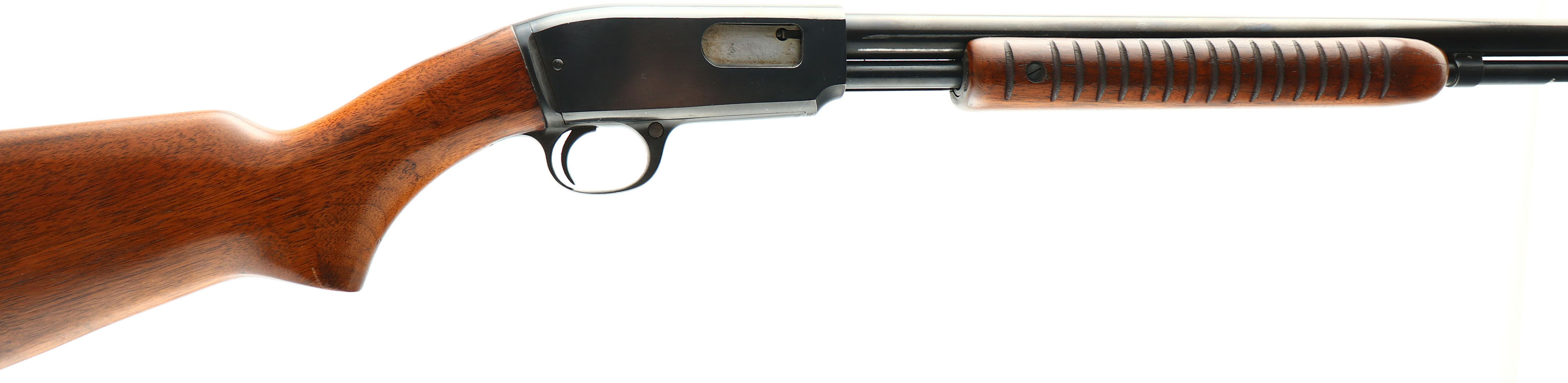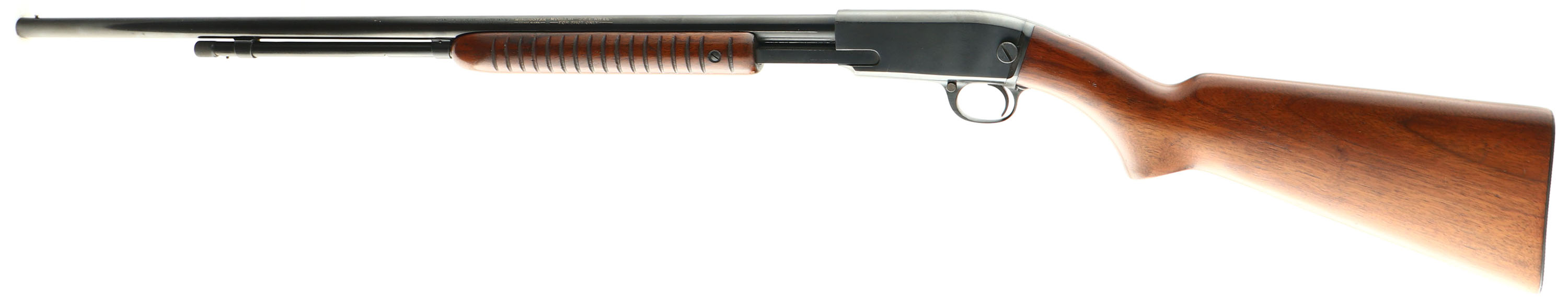 RARE Winchester, Model 61 Smoothbore, Marked .22 L. Rifle FOR SHOT ONLY, MFG. 1949, SN: 129277, Pump Action Take-down Rifle, 24'' Tapered round smoothbore barrel. Barrel opening is slightly larger at the muzzle than a standard .22 S.L.LR. diameter. The smoothbore makes this one of the rarest variations of the pump Winchester .22's produced. The factory flat knob pistol grip wood stocks are excellent, with very few blemishes to the fantastic original finish. The original metal blue finish rates 95% overall. Bore is excellent & bright, Bead only sight. Winchester checkered metal buttplate. A rare smoothbore which is highly desired by collectors. FFL or C&R Req - Value: 3000 to 5000