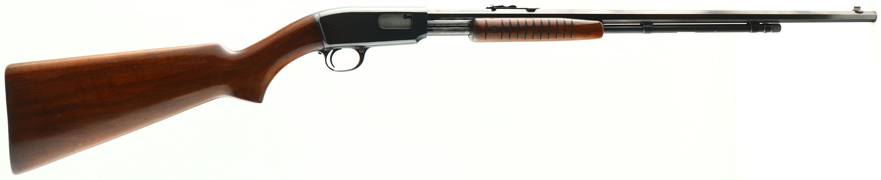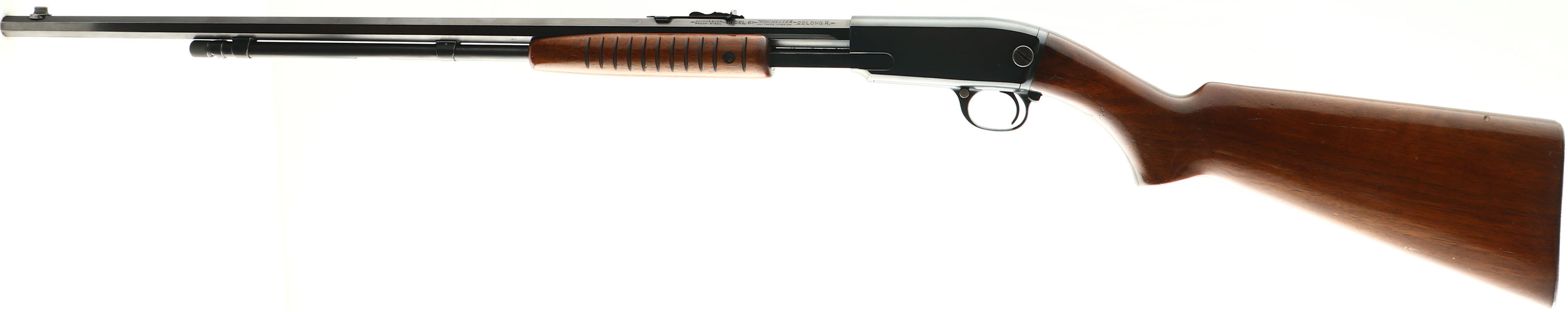 RARE Winchester, Model 61, Marked .22 LONG R. Cal., MFG: 1932 (1st year production), SN: 6739, Pump Action Rifle, Rare 24'' Octagon barrel. Rarer single caliber configuration. The original flat pistol grip wood stock & forearm are excellent. Has the early production small corncob forearm, with the flat belly & tapered tip. The original finish is excellent, with few small handling marks or minor contusions. The original metal blue finish is 97% overall, with wear loss due pump action & small edge loss. Factory front & rear sights. Bore is excellent, with defined rifling. Buttstock carries a checkered metal buttplate. A highly collectible, all original, 1st yr example of an original octagon, single caliber 61. FFL or C&R Req. - Value: 3000 to 5000
