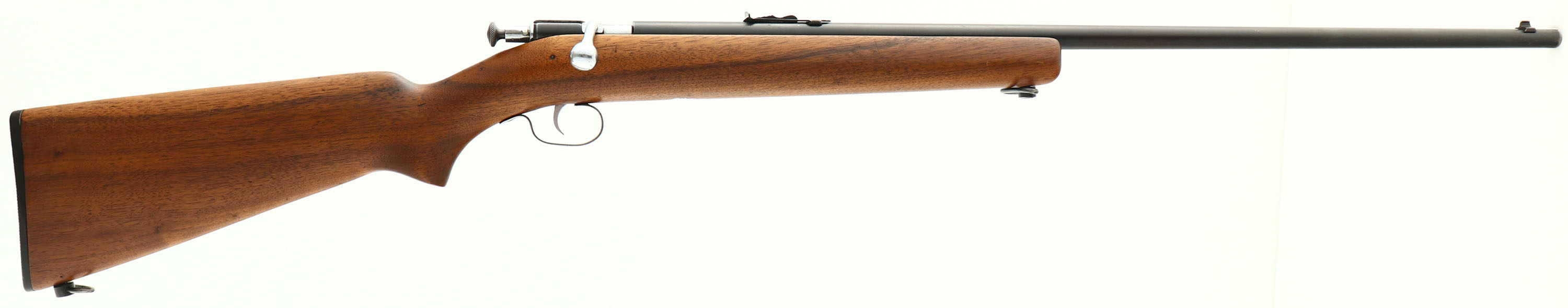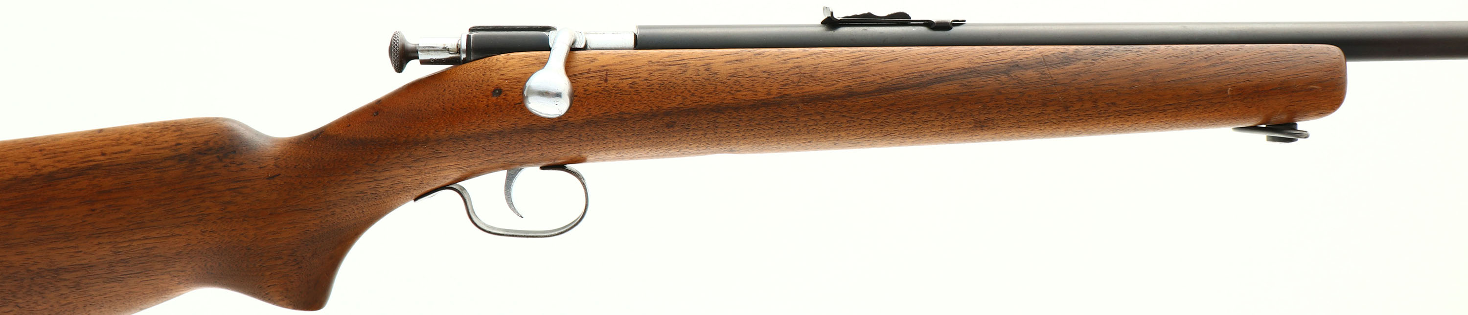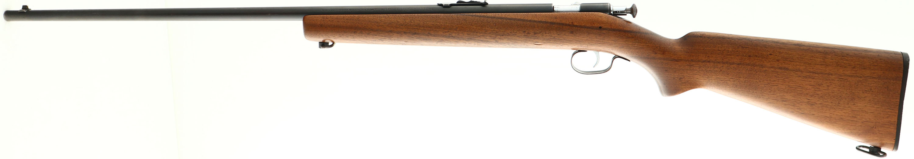 Winchester, Model 67, CAL: 22 S.L.LR., MFG: 1934-38, SN: NSN, Bolt Action Rifle, 27 1/8'' Tapered round barrel. The original flat pistol grip wood stock is excellent & solid. There are minor dings or scrapes to the original finish. The metal blue finish rates 70% overall. Trigger guard carries a thin brown patina. Bore is excellent. The barrel holds an adjustable rear sight & blade front sight. Nickeled bolt, bolt handle & trigger. Recessed take-down screw, which is a replacement. Winchester checkered buttplate. Sling loops. FFL or C&R Req. - Value: 200 to 400
