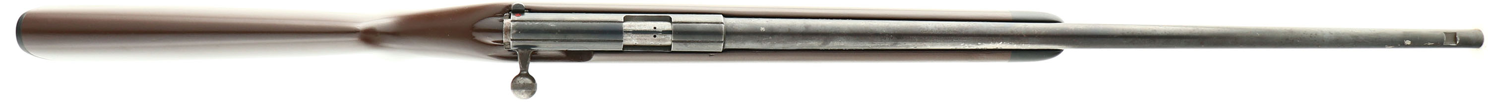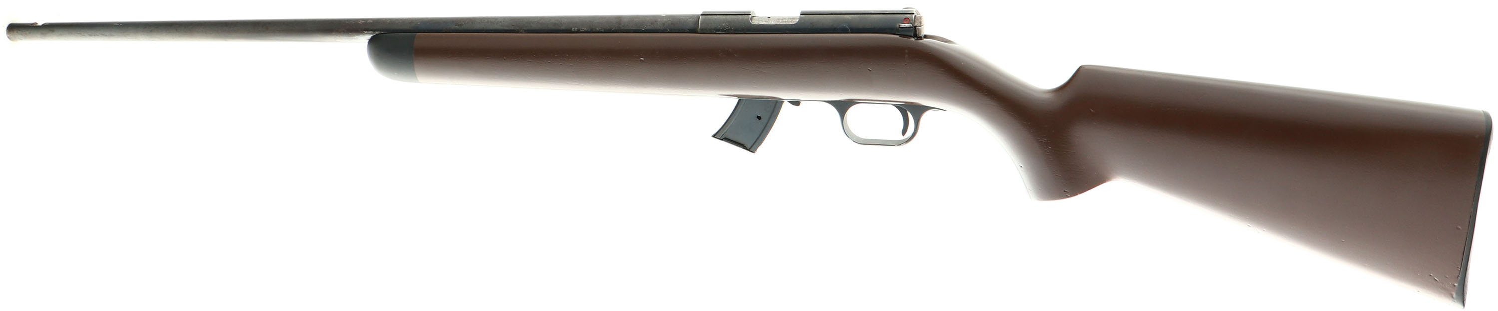 Browning, Model T-bolt, .22 Long Rifle Cal., MFG. 1966, SN: 24817X6, Bolt Action Rifle, 22'' round barrel. Belgian proof stampings on bolt, barrel & receiver. The original flat pistol grip wood stock is excellent, having been very nicely painted with a chocolate brown paint & black forend tip. There remains some minor dings or contusions under the current paint. The metal blue finish rates 50%, with an area mid barrel polished silver while cleaning an area of pitting. Bore is very good. Grooved receiver for future scope mounting. No rear sight provision & an open front dovetail. Detachable mag. FFL & C&R Req. - Value: 200 to 400