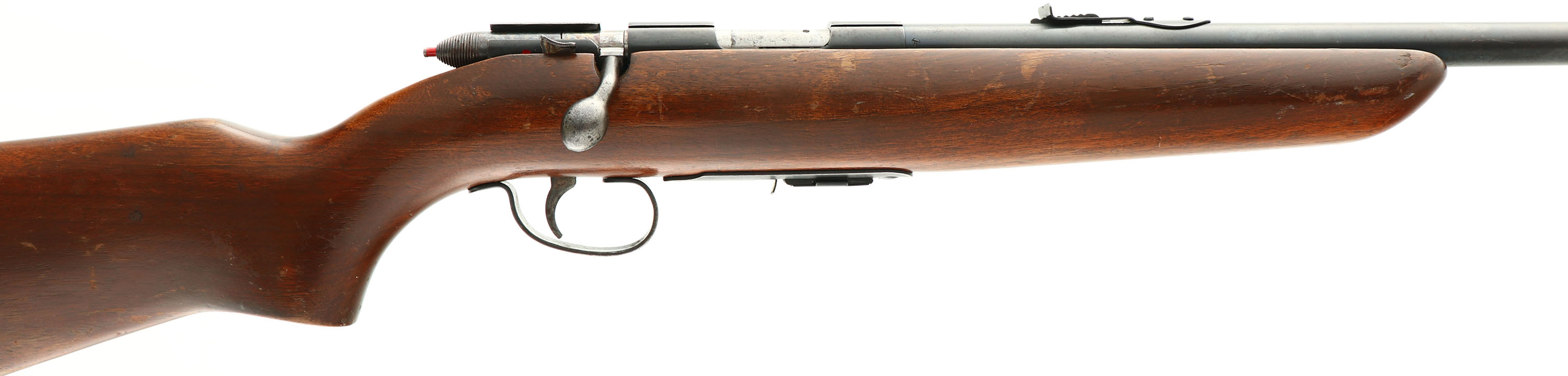 Remington, Model 511 Scoremaster, 22 S. L. LR, MFG: 1939-62, SN: NONE, Bolt Action Mag Fed Rifle, 25'' round tapered barrel. The original flat pistol grip stock is very good, displaying numerous minor surface scrapes, scratches or contusions to the original finish, which shows thinning & flaking. The original metal blue finish is 70% overall, with spotty areas of pitting & speckling. Bore is excellent. Fitted with standard open sights. The stock carries the original buttplate. ''Remington'' marked detachable mag. FFL or C&R Req. - Value: 200 to 400