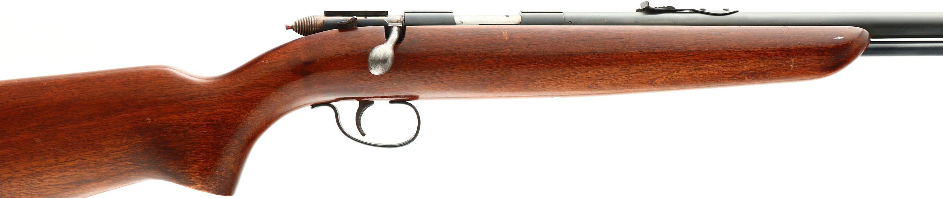 Remington, Model 512 Sportmaster, 22 S. L. LR, MFG: 1940-62, SN: NONE, Bolt Action Mag Fed Rifle, 25'' round tapered barrel. Tubular mag fed. The original flat pistol grip stock is excellent, with several minor surface scrapes, scratches or contusions to the original finish. The original metal blue finish rates 80% overall. Bore is excellent. Fitted with standard open sights. The stock carries the original buttplate. FFL or C&R Req. - Value: 250 to 450