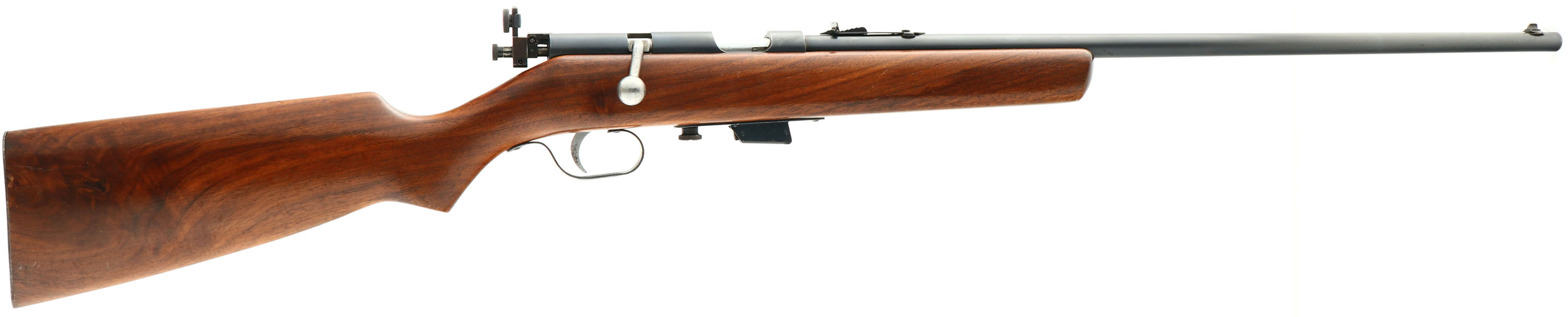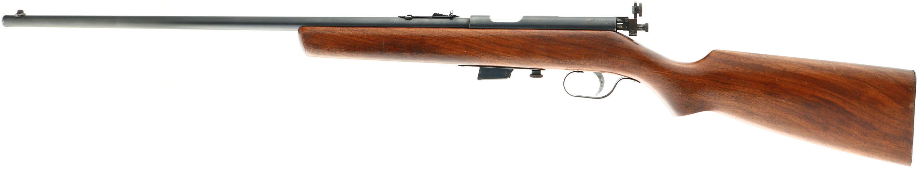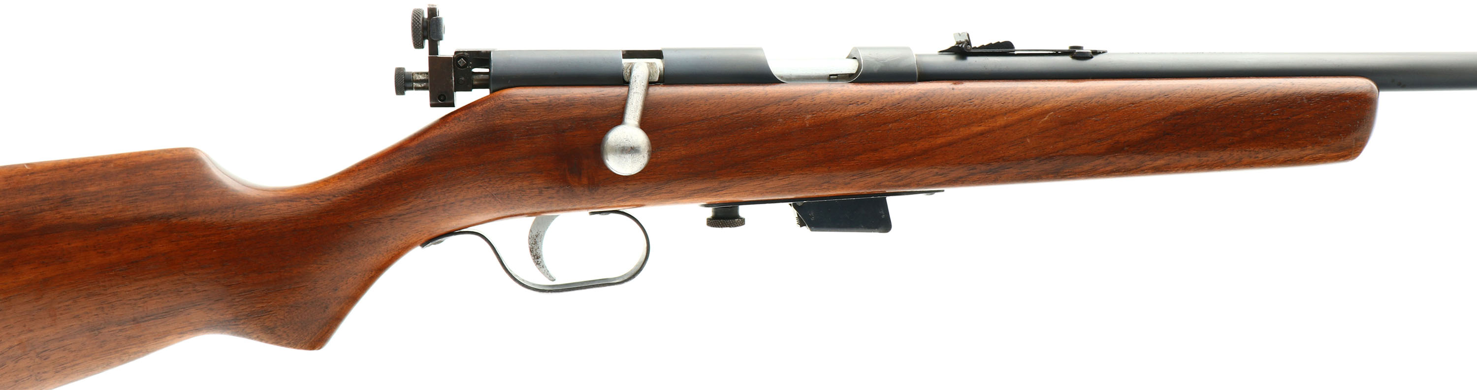 Ranger, Model 36 (Marlin Mod 80), 22 S-L-LR, MFG: 1934-39, SN: NONE, Bolt Action Rifle, 24'' round barrel. The flat pistol grip wood stock is excellent, with a several minor contusions, scrapes & scratches to the original finish. The factory metal blue finish rates 90% overall. Bore is excellent. The receiver carries a bolt mounted adjustable aperture sight. Barrel is fitted with adjustable rear sight & standard front sight. Buttstock carries a smooth metal buttplate. Detachable mag. FFL or C&R Req. - Value: 100 to 200