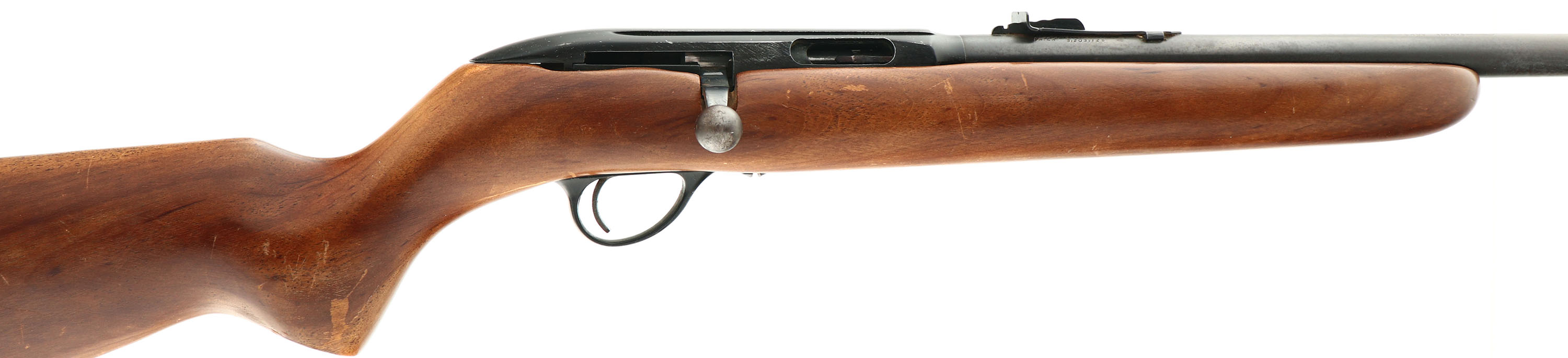 Stevens (Savage Arms), Model 73, .22 S, L, LR Cal., MFG. 1920's-30's, SN: P833594, Bolt Action Single Shot Rifle, 20'' round barrel. The original flat pistol grip wood stock is very good & solid, with some minor scrapes, contusions & scratches to the thinning original finish. The original metal blue finish rates 70% overall. Bore is excellent. The barrel caries an adjustable rear & front blade sight. Stock carries a replaced plastic buttplate. The trigger does not engage & therefore does not fire. Likely needs gunsmith repair & possible parts. Therefore its being sold ''AS-IS'' with no returns. FFL or C&R - Value: 30 to 100