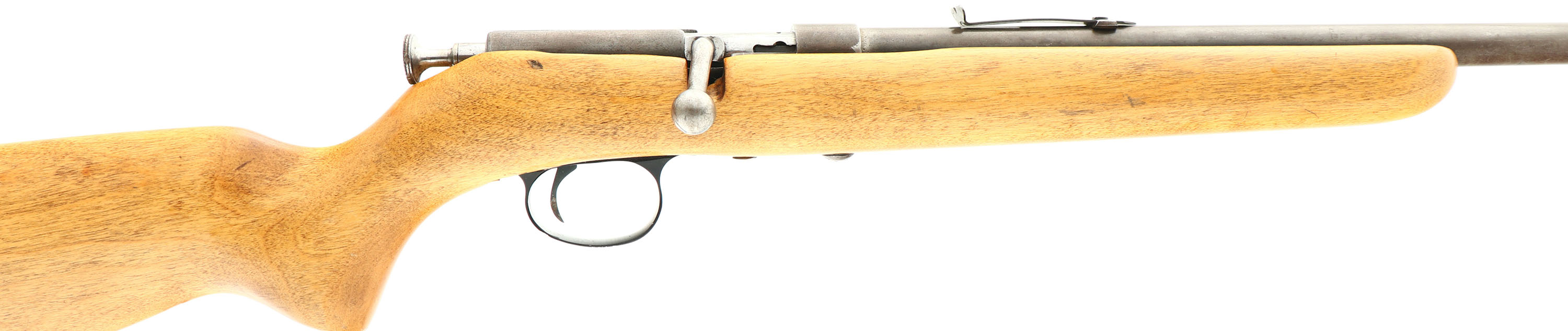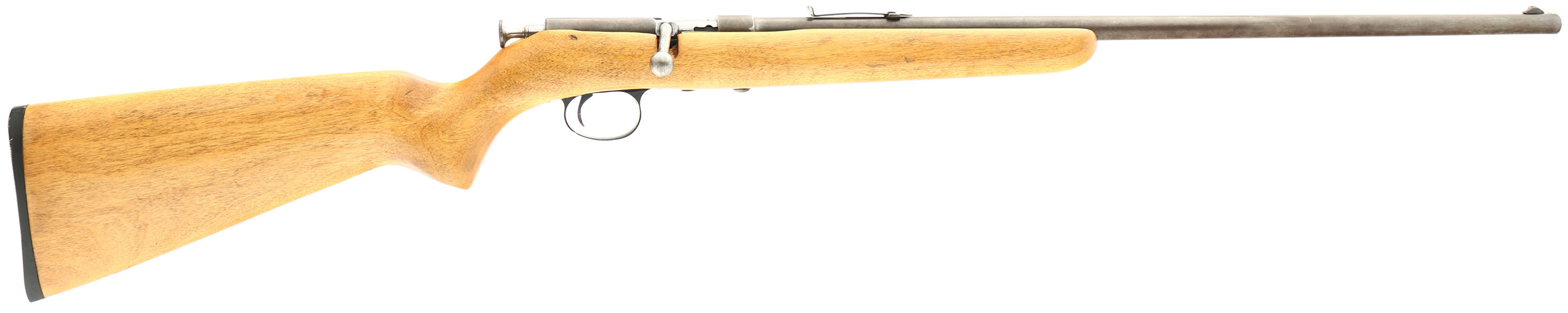 Sears Ranger (Marlin), Model 103-8 SMOOTHBORE, Marked .22 S, L, LR Cal., MFG. 1936-41, SN: None, Bolt Action Single Shot Rifle, 24'' round barrel. The original flat pistol grip wood stock is excellent, having been lightly sanded & nicely refinished. There are very few minor scrapes or scratches remainging. The metal blue finish has worn gun metal gray, with a very thin brown patina. The smoothbore is very good & bright. The barrel carries an adjustable rear missing the elevator & front blade sight. The stock carries a replacement buttplate. Missing sling studs. A nice looking vintage .22 smoothbore rifle. FFL or C&R Req. - Value: 100 to 200
