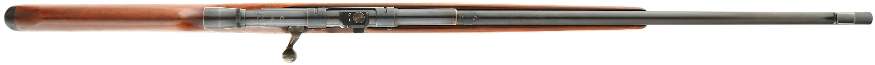 Hawthorne Warrior, Model M820B (Mossberg346), Marked .22 S, L, LR Cal., MFG. 1960-71, SN: None, Bolt Action Rifle, 24'' round barrel. Tubular mag. The originalround pistol grip Monte Carlo wood stock is very good, having been sanded & refinished. There remains a few minor finish handling marks to the finish. The original metal blue finish rates 90% overall. The bore is excellent & bright. The rifle is mounted with a Hawthorne 4X-1480 scope in the grooved receiver, while the barrel carries an adjustable rear & hooded front blade sights. The stock carries the original plastic buttplate. Missing the small plastic safety indicator buttons in the stock. Tubular mag. FFL or C&R Req. - Value: 150 to 250