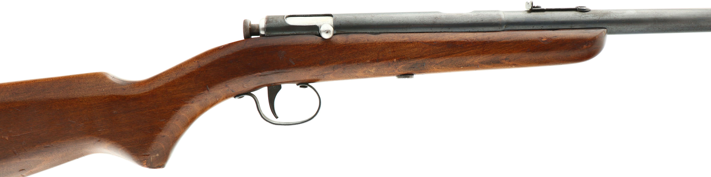 C.J Hamilton & Sons Model 47, 22 CAL S & L, MFG: 1927-32, SN: NONE, Bolt Action Rifle, 16'' round tapered barrel. The original flat knob pistol grip & flat board style stock is excellent, with several minor contusions, scrapes & scratches to the original finish. Original metal blue finish rates 85% overall. The steel rolled barrel carries 12 grooves at 1 turn to 16''. Bore is very good. Original blade front & adjustable rear sight. Correctly carries no buttplate. An all original & far better than average Hamilton rifle. FFL or C&R Req. - Value: 200 to 400