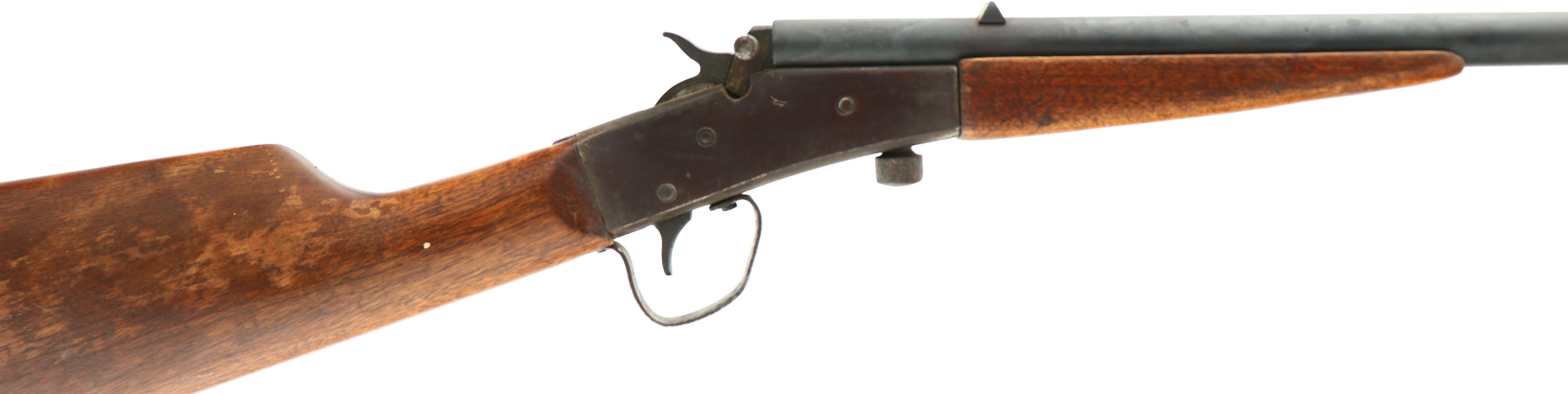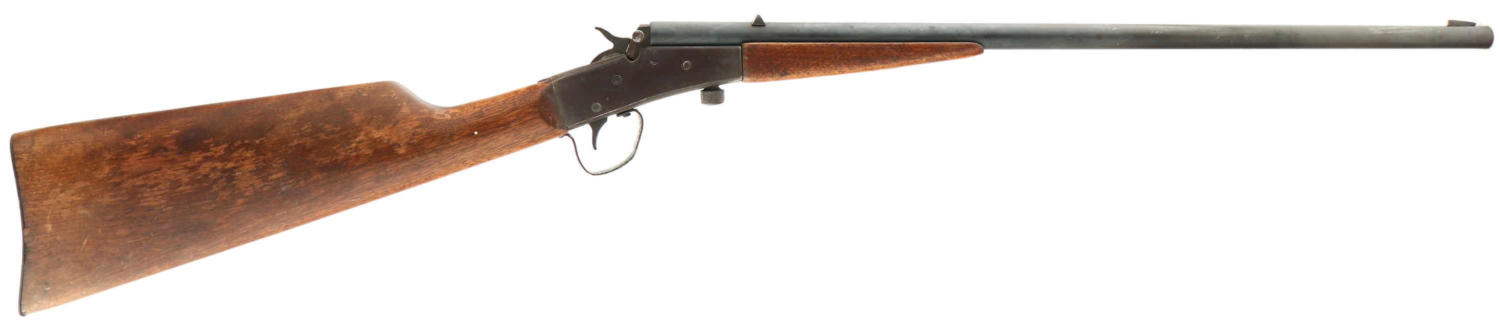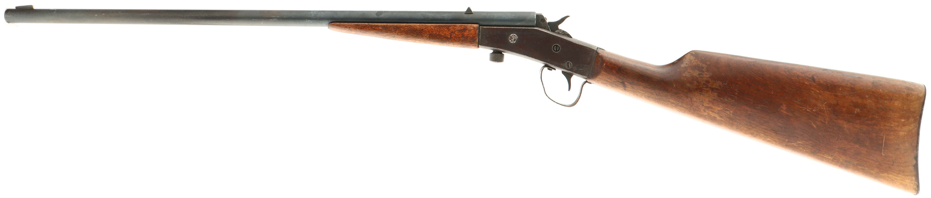 J. Stevens Arms Co. Model ''Little Scout No.14 1/2'', 22 LONG RIFLE, MFG: 1906-10, SN: N/A, Falling Block, Single Shot Rifle, 20'' round barrel. The original wood stocks are very good & solid, with several minor contusions, scrapes & flaking to the original finish. The metal finish on the barrel & receiver is an applied finish, with the barrel having a spotty gray/black coloring, while the receiver is mostly chocolate brown. Bore is good & bright, with thinned rifling. The gun is fitted with fixed rear sight & blade front sight. Metal buttplate. FFL or C&R Req. - Value: 50 to 150