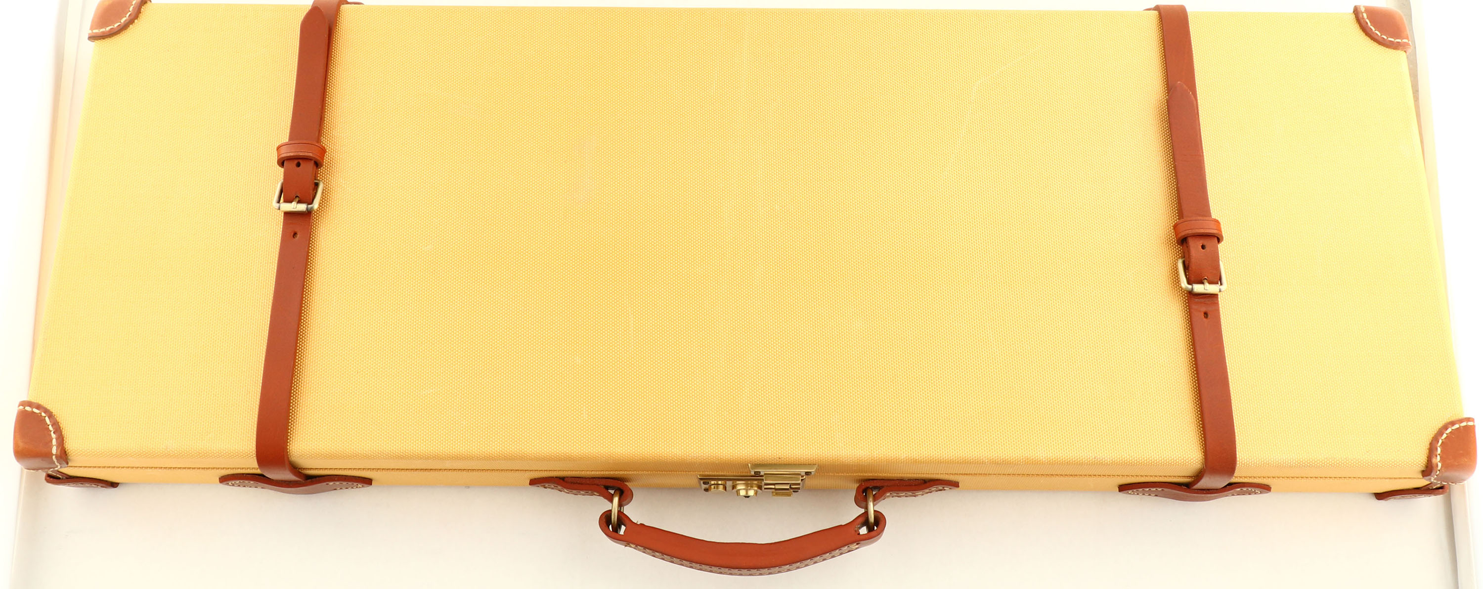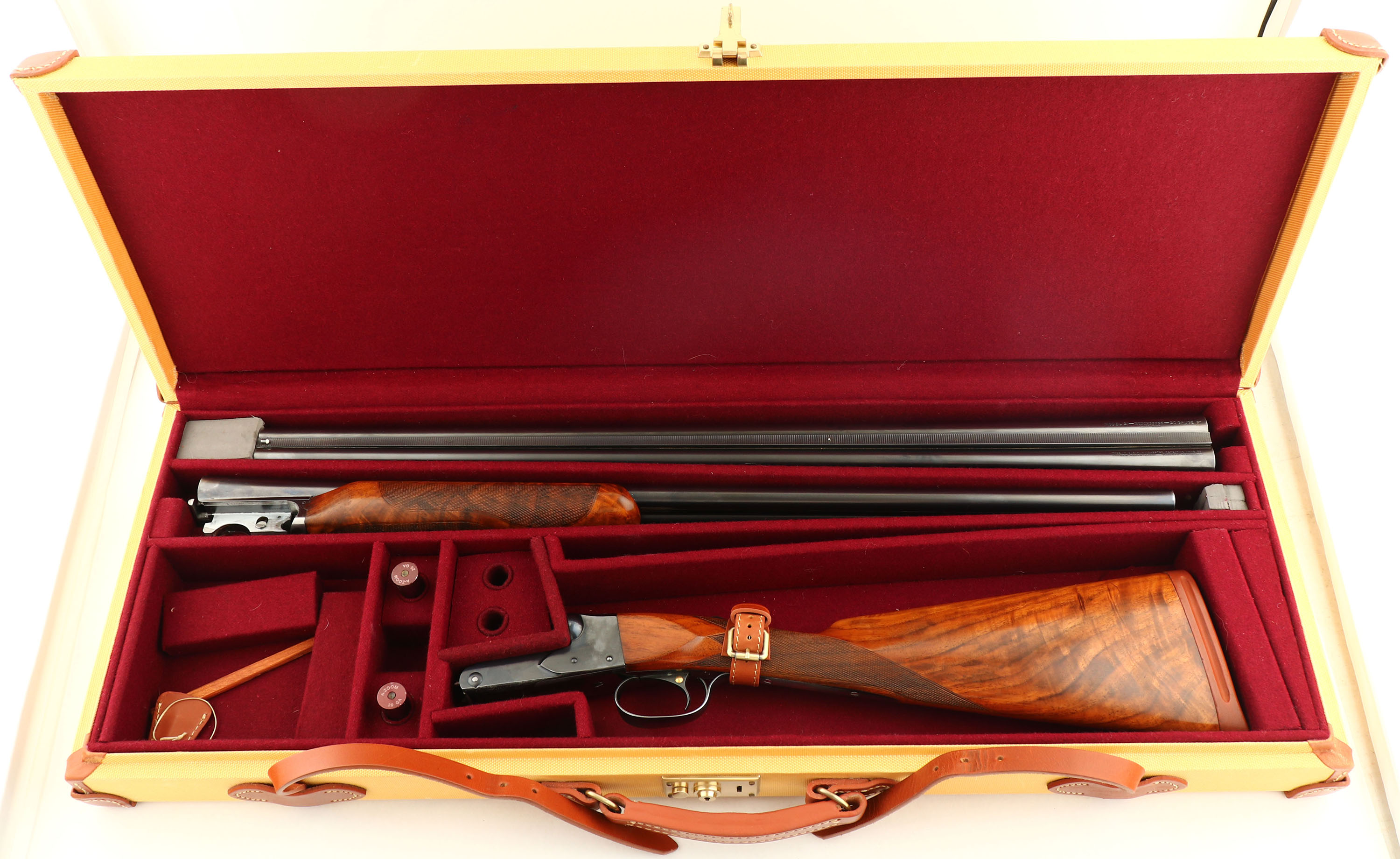 Comes in a non-factory hard case, with butterscotch exterior, burgundy interior & brown leather straps, includes case key & snap caps. Additionally, this set comes with a Cody Firearms Museum Factory Letter, confirming the current configuration, age & other pertinent details.