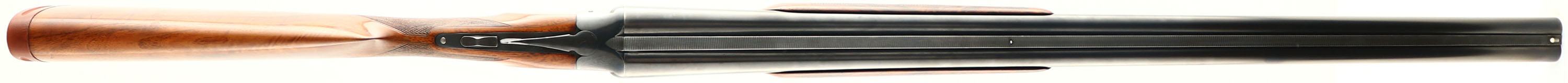 Wood: The deluxe grade, fancy walnut stocks displays fantastic rippled & feathered grain. The straight grip stock & beavertail forend features fine hand checkering & maintains nearly all the original finish. Single forend for the set. Stock carries a solid red rubber recoil pad.