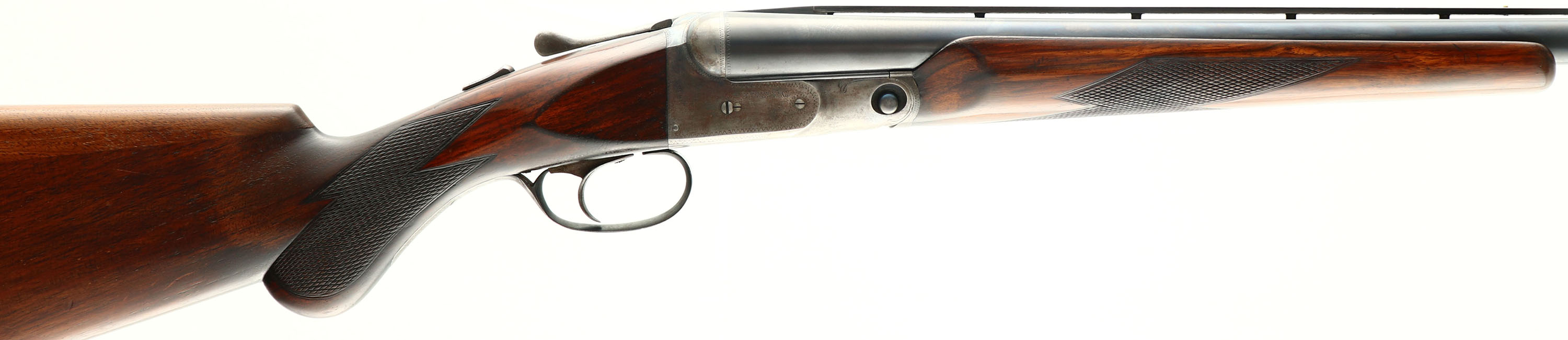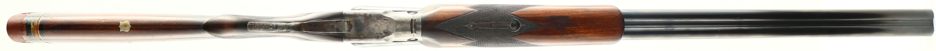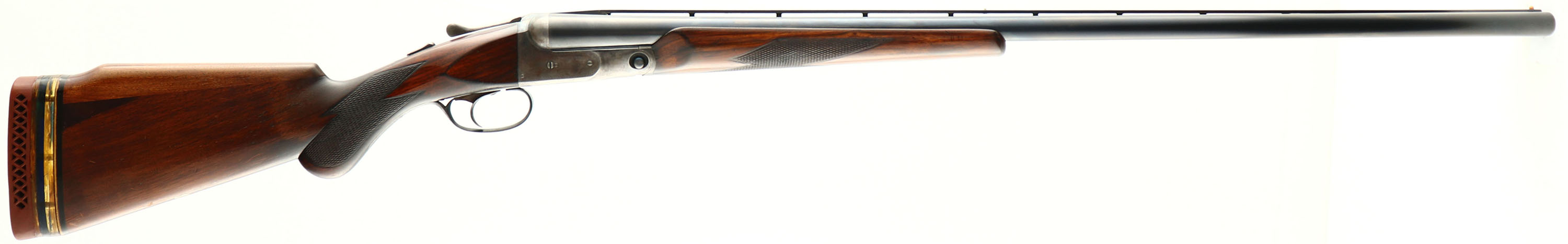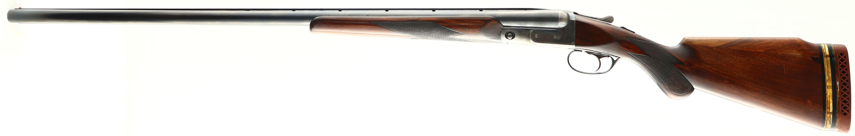 Parker Bros, VH Grade, CAL: 12GA, MFG: 1929, SN: 233387, Break Action SxS Shotgun, 32'' barrels. The barrels & frame carry standard factory markings. The checkered round knob wood stock & beavertail forend are good & solid, having been altered & refinished. The stock was cut & a Monte Carlo comb was added. There are a couple dark shims under the tail of the alteration, alongside other dings & scrapes to the applied finish. Inlaid blank silver sheild nameplate in belly. The blued finish on the barrels rates 90% coverage, with thinning toned to a brown patina & some intermittent spotting/speckling. The case-hardened frame retains visible, but faded case-colors, with areas worn to metal gray & spotting toned to a brown patina. The trigger guard is mostly worn to metal gray & toned to a brown patina, with remnants of blue. Bores are excellent, with light wear marks from use. The ventilated rib holds a white mid-rib bead & tan front bead. Stock has spacers & a ventilated red rubber recoil pad. Single selective trigger. LOP: 13 1/2'', DAH: 2 1/8'', DAC: 1 5/8''. FFL or C&R Req. - Value: 300 to 600