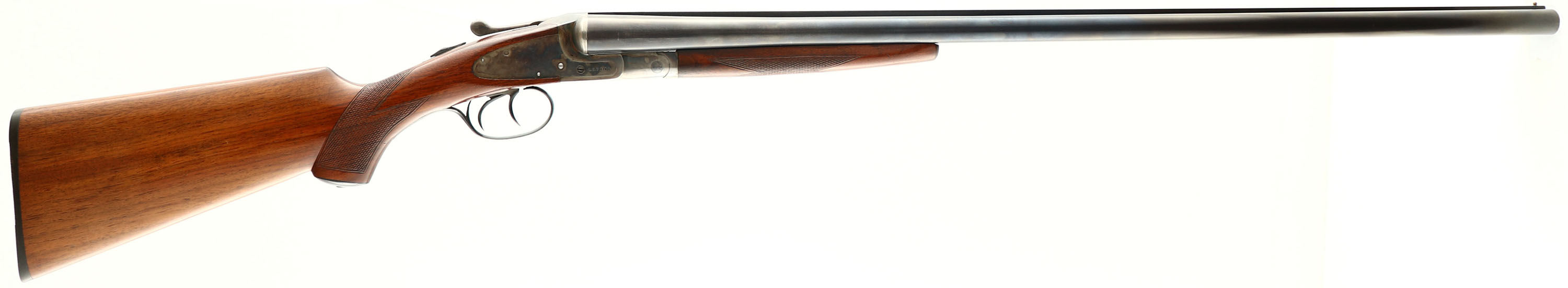 L.C. Smith, Field Grade, CAL: 12GA, MFG: 1945/46, SN: 205745, Break Action SxS Shotgun, Choke: F/MOD,30'' barrels. Standard factory markings on the frame & barrel. The original checkered flat pistol grip stock is excellent. The original finish is excellent. The original blued finish on the barrel rates 80-85% coverage, with thinning at the carry/handling points. The case-hardened frame retains nice case-colors, with concentrated wear to the bottom of the frame (carry point). Bores are excellent. The solid matted rib holds single front bead. Stock carries a grooved plastic buttplate. LOP: 14 1/8'', DAH: 2 1/3'', DAC: 1 3/8''. An excellent example of a late war-time/ early post-war shotgun. FFL or C&R Req. - Value: 400 to 800