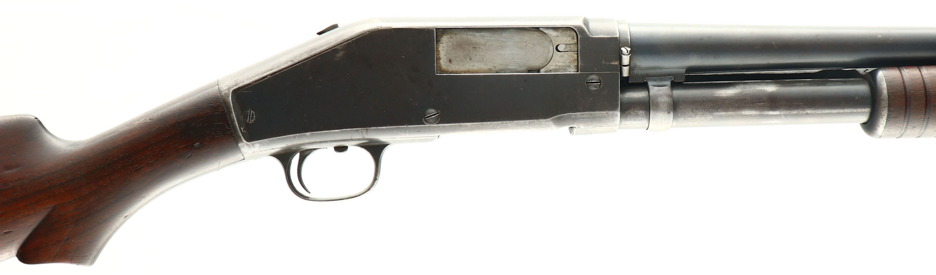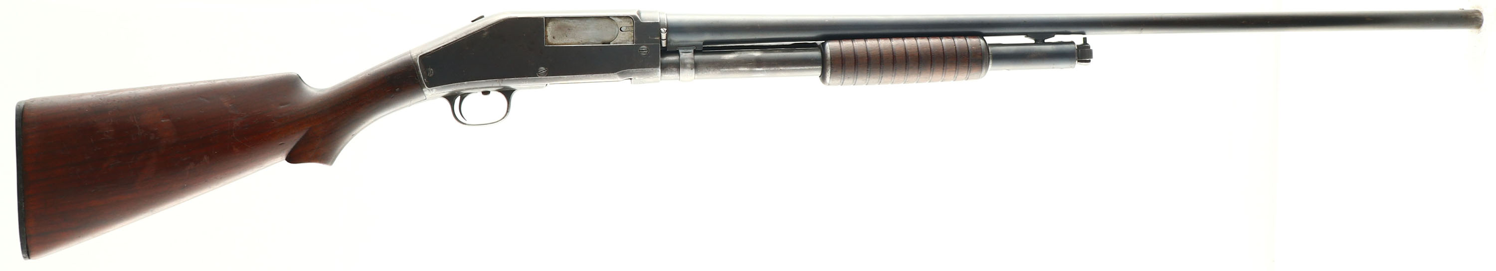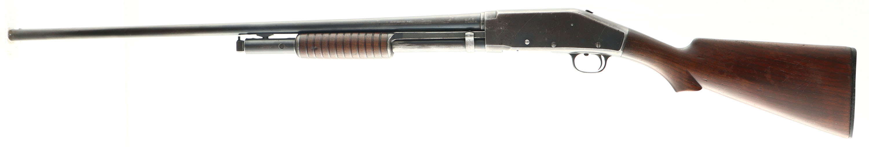 Marlin, Model 31-20, CAL: 20 GA, MFG: 1911-23, SN: 292, Pump Action Shotgun, 28'' Matted barrel. The left side of the barrel is marked with the address/patent dates & marked ''SPECIAL SMOKELESS STEEL''. The model & SN are on the bottom of the frame/trigger guard. The original scalloped pistol grip stock & corncob forend are very good & solid. There are minor contusions, scrapes & areas of thinning finish. The blued finish on the barrel rates 80% coverage, with areas thinning & toning to a brown patina. The receiver rates 60% coverage, with thinning toned to a brown patina & areas worn to metal gray. Bore is good & bright, but has intermittent roughness & striations. Barrel has single front bead. Stock has a replaced checkered plastic buttplate. LOP: 13 1/8''. FFL or C&R Req. - Value: 150 to 300