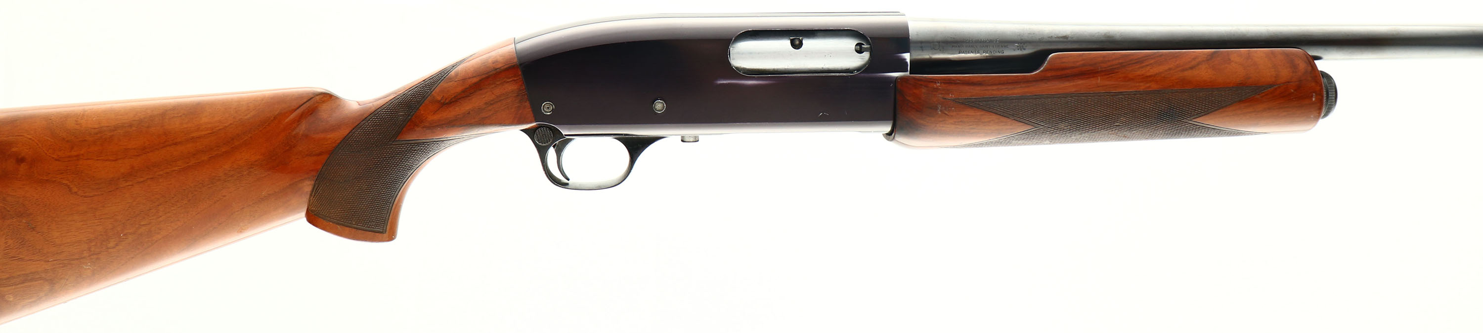 Manufrance Firearms International Corporation, Model La Salle, 12 GA., MFG. early 1960's, SN:17631, Pump action, 28'' Round barrel. The original checkered & flat pistol grip stocks are excellent, with several minor scratches & contusions to the original finish. The original metal blue finish on the barrel rates 70%, while the aluminum alloy receiver finish rates 70%. Bore is excellent. The barrel carries a single front bead. The stock carries a Remington checkered metal buttplate. LOP is 14''. FFL or C&R Req. - Value: 150 to 400