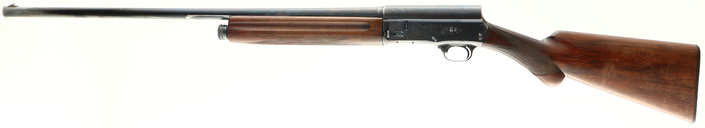 Browning, Model A-5 Belgium Browning, CAL: 16 GA, MFG: 1950, SN: X41228, Semi-Auto Shotgun, Chamber 2 3/4'', Choke: Mod, 27 1/2'' round barrel. the original checkered & round pistol grip wood stocks are very good, with a few small contusions or scrapes, small toe chip repair. Checkering is still very nice, The factory metal blue finish rates 70% on matted receiver with speckling, 60% on barrel with most of the wear on the underside. Bore is very good, The barrel carries a single front raised bead. Buttstock carries an original J.M. Browning buttplate, LOP: 14 1/4''. FFL or C&R Req. - Value: 300 to 600