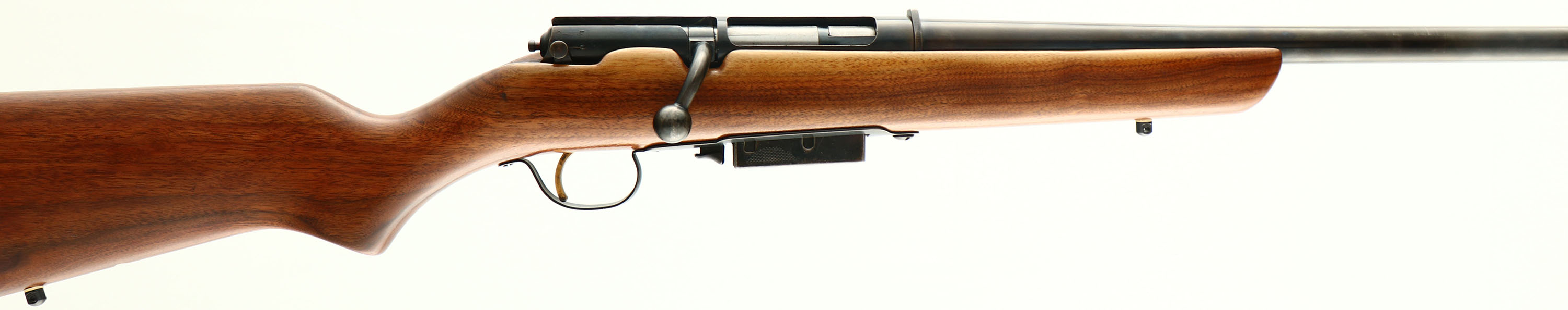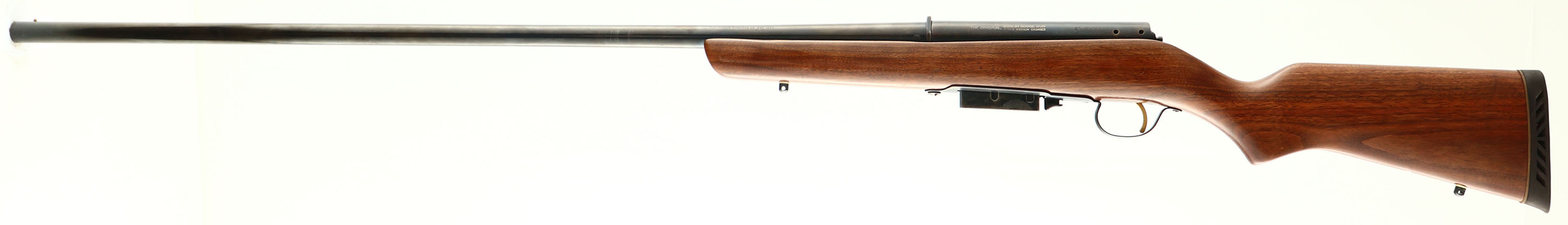 Marlin Firearms Co., The Original Marlin Goose Gun (Model 55), CAL; 12GA, MFG: 1962-96, SN: 27432799, Bolt Action Shotgun, 36'' barrel. Standard markings on barrel & receiver. The original flat pistol grip wood stock is excellent, having been sanded & refinished. The blued finish on the barrel is a mix of original blue & brown patina, with some marks worn to metal gray. Gold tone trigger. Bore is excellent. Single bead front sight. Stock has ventilated black rubber recoil pad. Sling studs. Detachable 2-round mag. FFL Req. - Value: 300 to 450