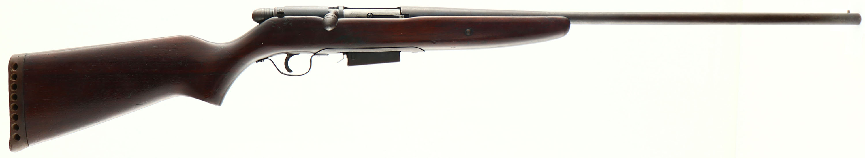 Hi-Craft (Kessler Arms Corp), Model 326 FR (30C), CAL: 20 GA, MFG: 1950's, SN: NONE, Bolt Action Shotgun, Choke: Full 2 3/4'', 26'' barrel. The flat pistol grip wood stock is very good, with many contusions, nicks & surface scrapes. The metal blue finish rates 70% overall, Bore is excellent. The barrel holds a single front bead. Buttstock carries an unmarked ventilated recoil pad. FFL or C&R Req. - Value: 100 to 200