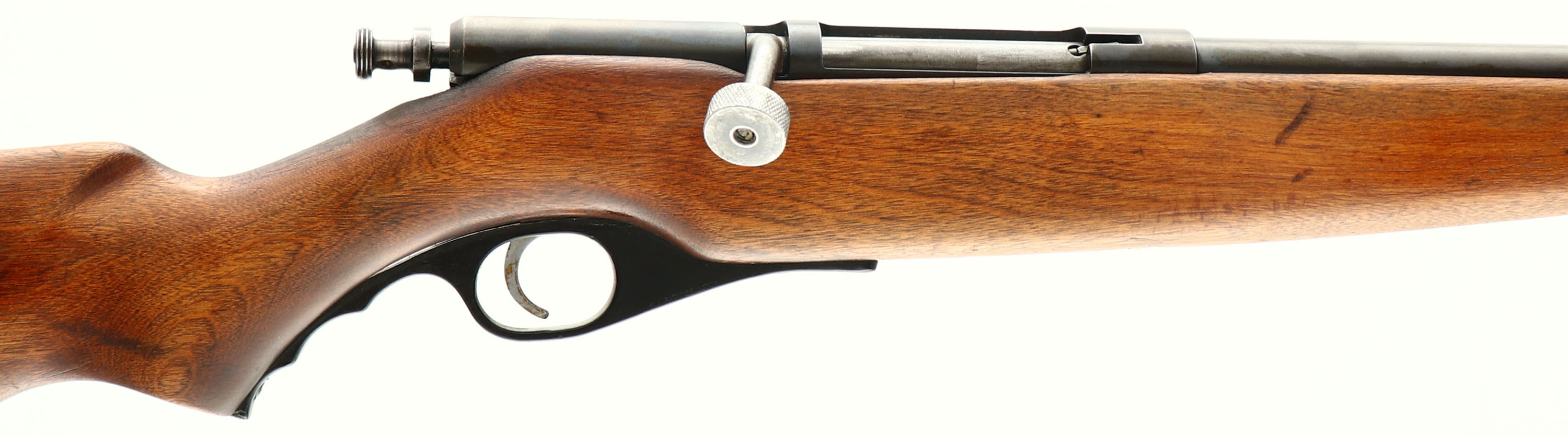 Ward's Western Field, Model 04M 218A, CAL: 410GA, MFG: N/A, SN: NSN, Bolt Action Shotgun, 24'' threaded barrel w/choke, 3''. The original flat pistol grip wood stock is very good, having been refinished long ago. There are numerous light scrapes & a few dings to the worn & thinning refinish. The metal blue finish has worn to 60%. Bore is excellent & bright. The barrel holds a single front bead. Grooved plastic buttplate. Bolt handle has been replaced and will not stay attached. FFL or C&R Req. - Value: 80 to 150
