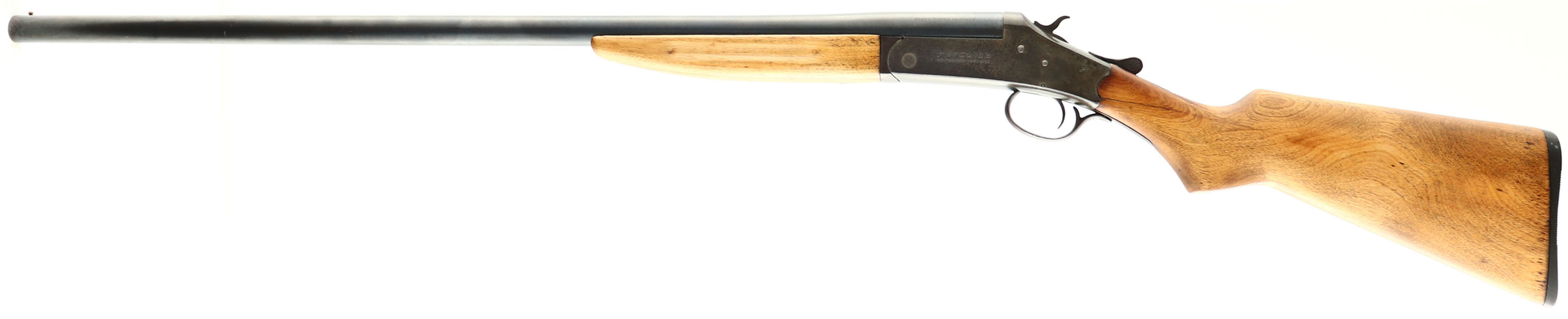 Montgomery Ward, Model Hercules, CAL: 12 GA, MFG: 1929-31, SN: None, Break Action Single Shot Shotgun, 30'' barrel. The flat pistol grip wood stocks are very good & solid, having been sanded & refinished. There are three tightly repaired hairline cracks at the wrist & at the upper tang, along with the remains of light scratches & contusions. The metal blue finish on the barrel rates 85%. The case-hardened receiver has faded mostly to a spotty dark gray with some brown patina & is marked ''HERCULES'', ''MONTGOMERY WARD & CO.'' on the left side. Bore is excellent. Single front bead. Loose trigger guard, Buttstock carries a black plastic buttplate. LOP: 13 3/8''. FFL or C&R Req. - Value: 50 to 200