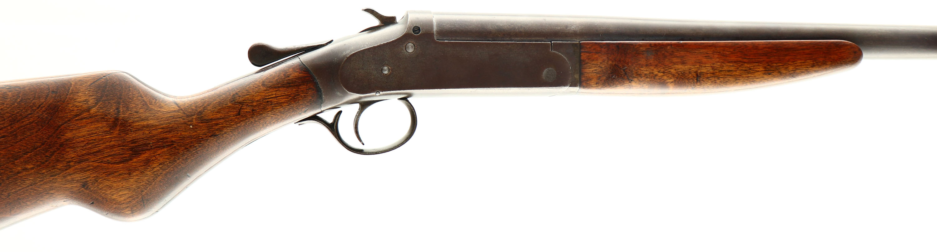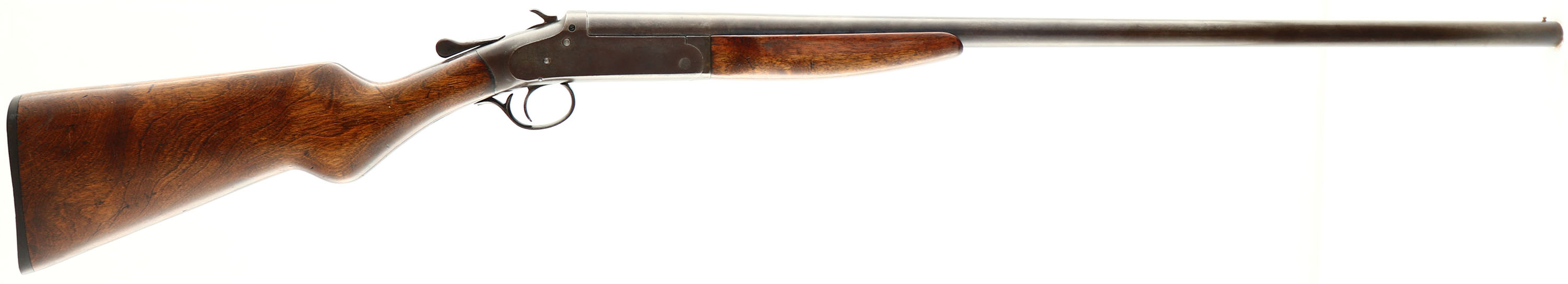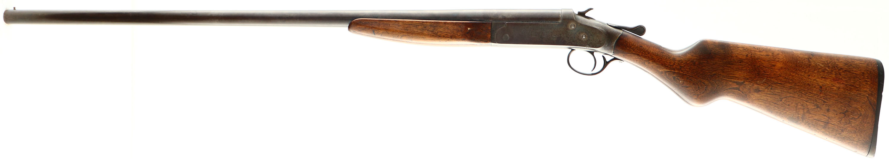 Montgomery Wards (Iver Johnson Arms & Cycle Works), Model Excel, CAL: 12 GA, MFG: 1930-50's, SN: 86148XF, Break Action Single Shot, Choke: F, 30'' barrel. The round knob pistol grip wood stocks are very good, The stocks have light contusions & flaking or scuffs to the finish. The metal blue finish is toned to a brown patina. Bore is excellent. Single front bead. Buttstock carries a black plastic buttplate. LOP: 14 1/4''. FFL or C&R Req - Value: 100 to 200